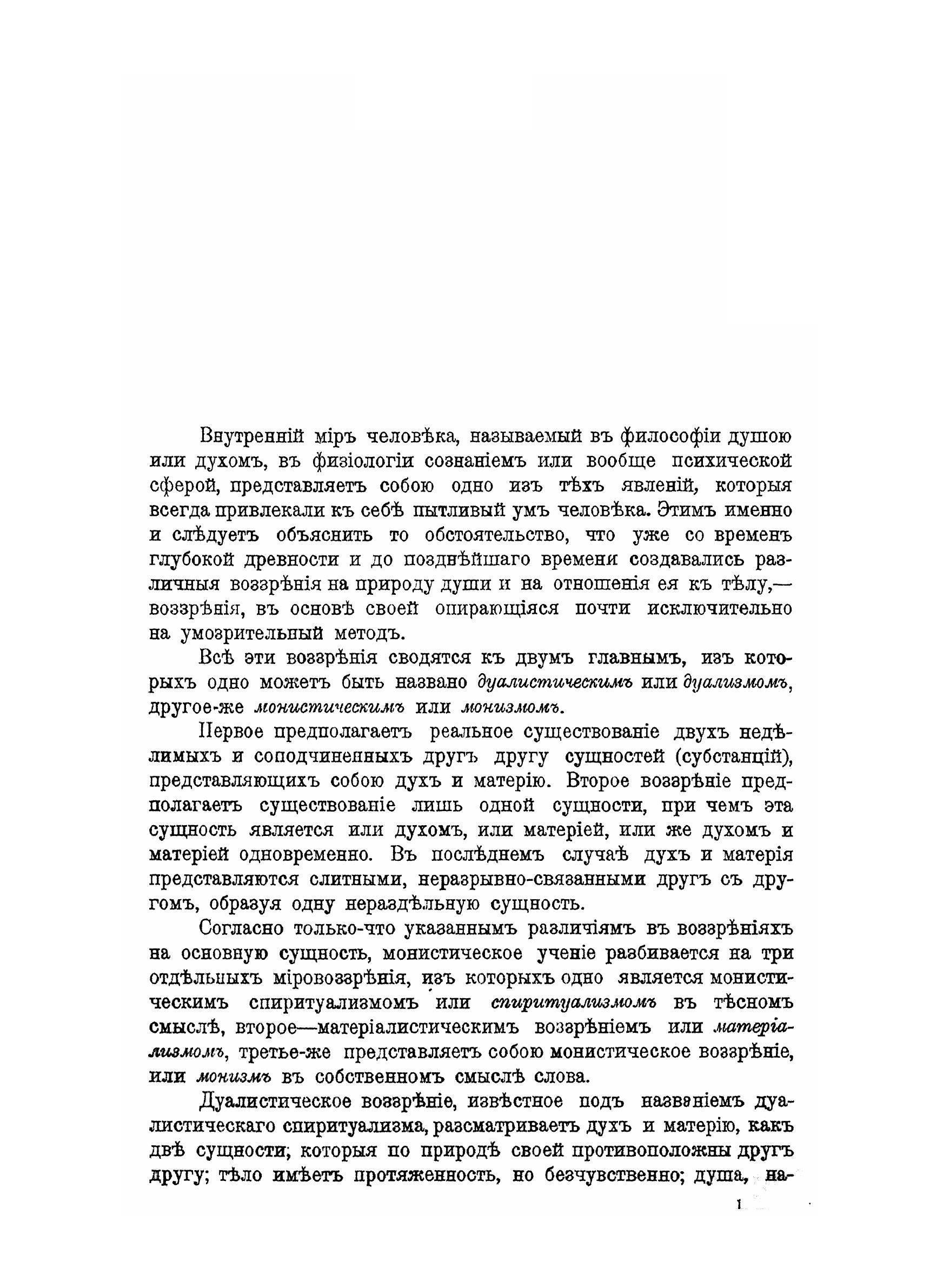 Въ послѣднее время основные психо-біологическіе вопросы все болѣе и болѣе привлекаютъ къ себѣ вниманіе ученыхъ и образованной публики, благодаря, очевидно, тому обстоятельству, что психика и жизнь въ ихъ взаимныхъ отношеніяхъ являются наиболѣе жгучими и важными вопросами, затрогивающими кореннымъ образомъ наше міровоззрѣніе. Естественно, что они заслуживаютъ вниманія какъ со стороны всѣхъ лицъ, посвящающихъ себя изученію той или другой отрасли біологпчеокихъ наукъ, такъ равно и со стороны всей вообще мыслящей части человѣчества. Руководясь этимъ, авторъ пытается дать въ послѣдующемъ изложеніи анализь данныхъ, которыя представляетъ современная наука для разрѣ-шеиія вопросовъ о взаимномъ отношеніи психпчеекихъ и матеріальныхъ процсссовъ организма и объ отношеніи психическихъ процессовъ къ жизненнымъ его проявлениями Само собою разумѣется, что въ такихъ вопросахъ, о которыхъ идетъ рѣчь, въ настоящее время возможна и имѣеіъ значеніе лишь установка основныхъ точекъ зрѣнія, болѣе же детальное изученіе предмета слѣдуетъ предоставить будущему.