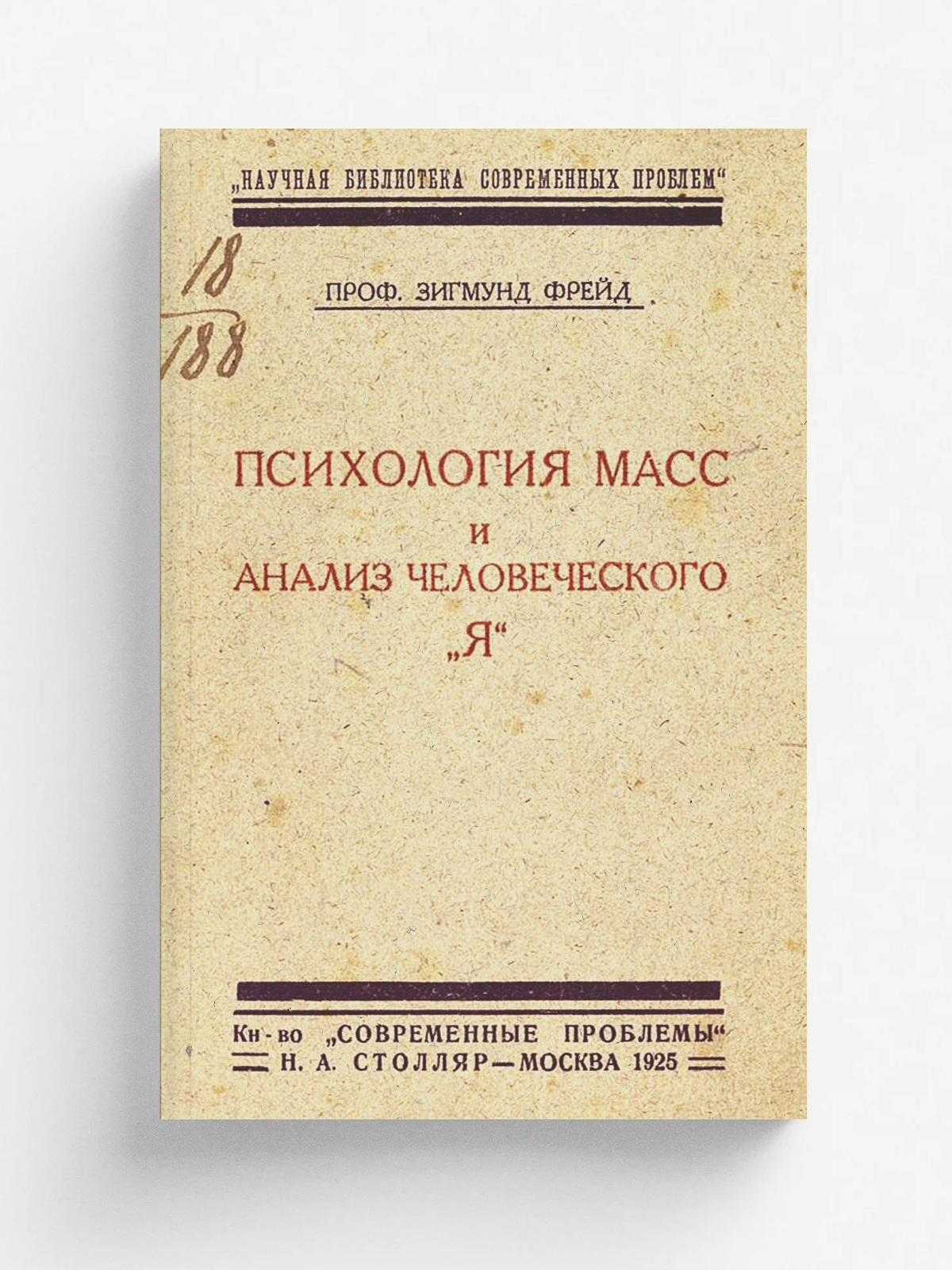 Фрейд З. Психология масс и анализ человеческого «я» / Проф. Зигмунд Фрейд; Пер. с нем. д-ра Я. М. Когана. — М. : «Соврем. проблемы» Н. А. Столляр, 1925. — 98 с. ил.; 18 см. — (Науч. б-ка «Соврем. проблем»).