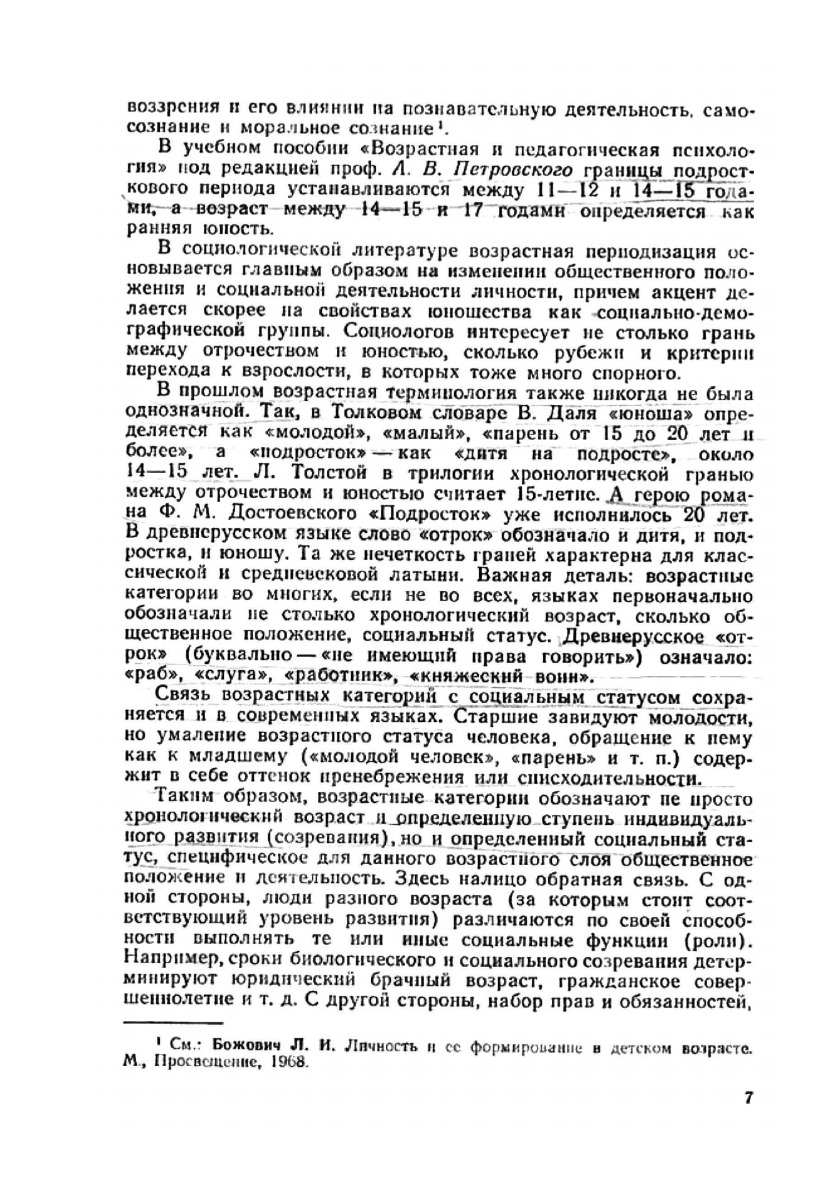 В центре внимания автора - основные закономерности и свойсва юношесткой психологии с точки зрения формирования личности. В книге показано, что становление личности молодого человека зависит от социальной среды, характера деятельности и от индивидуально-типологических особенностей юношей и девушек. Юность рассматривается автором как стадия жизненного пути и как этап социализации личности.