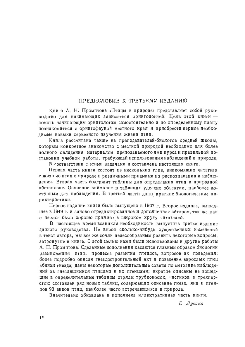 Книга А. Н. Промптова "Птицы в природе" представляет собой руководство, которое дает возможность начинающим орнитологам самостоятельно и по определенному плану познакомиться с фауной птиц местного края с тем, чтобы на основе полученного опыта они могли далее с успехом перейти к более глубокой краеведческой или исследовательской работе по птицам. Первая часть книги состоит из нескольких глав, знакомящих читателя с жизнью птиц в природе и различными приемами их распознавания и наблюдения. Вторая часть содержит таблицы для определения птиц в природной среде. В третьей части даны краткие биологические характеристики.