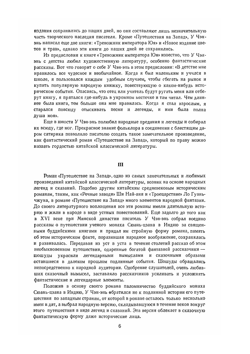 Написанный У Чэн‑энем (1500–1582) около 1570 г. роман “Путешествие на Запад” стал началом жанра фанстастической или героико‑фантастической эпопеи. Повествование о похождениях Сунь У‑куна – царя обезьян – стало одним из любимейших в Китае и одним из самых известных за рубежом.