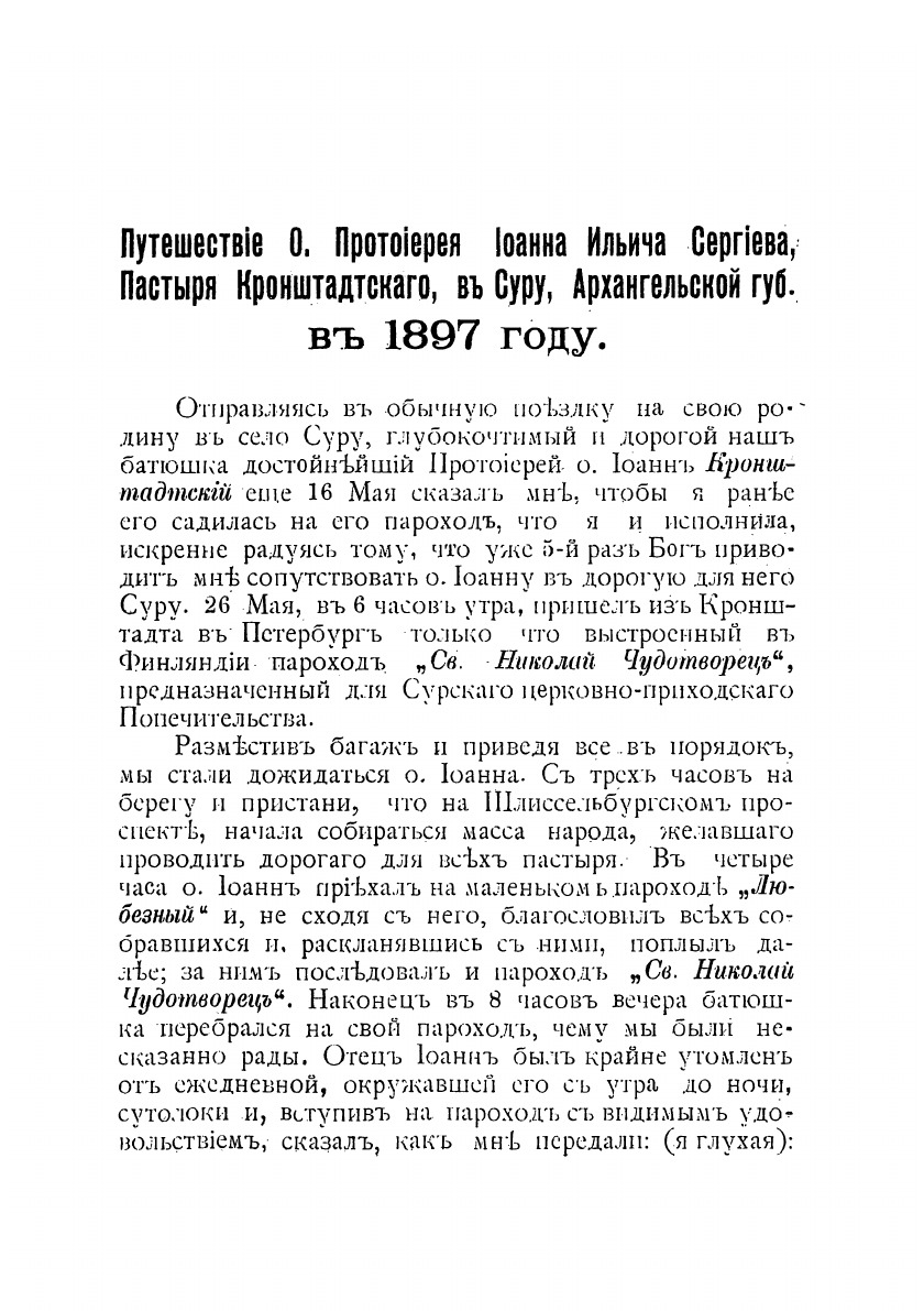 Путешествие отца протоиерея Иоанна Ильича Сергиева, пастыря Кронштадтского, на свою родину в село Суру, Архангельской губернии Пинегского уезда в 1897 году.