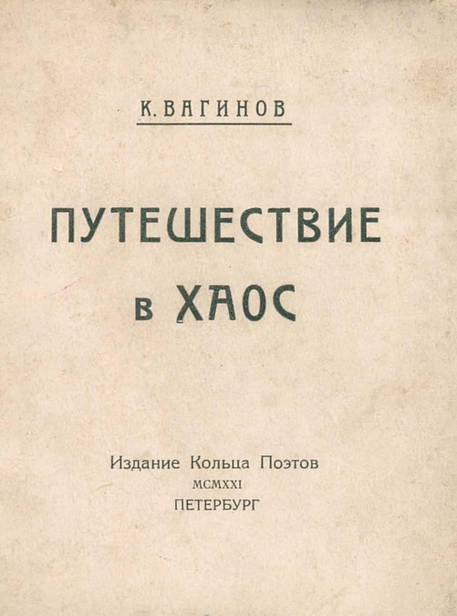 Вагинов, Константин Константинович. Путешествие в хаос / К. Вагинов. — Петербург : изд. «Кольца поэтов», 1921.