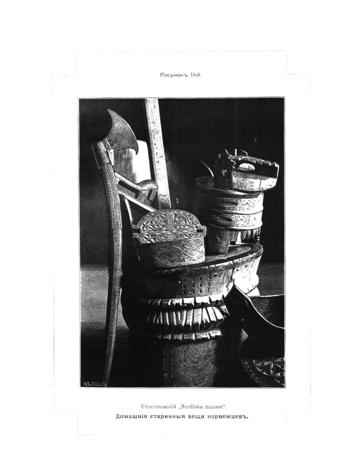 В книге представлены описания и рисунки деревянных церквей и построек Архангельской губернии, в частности Архангельского, Онежского, Кемского, Каргопольского (тогда Олонецкая губерния) уездов. На страницах книги можно найти описания Соловецкого и Печенгского монастырей, церквей посада Ненокса, также описание и сравнительную характеристику домашней утвари норвежцев и жителей севера России.