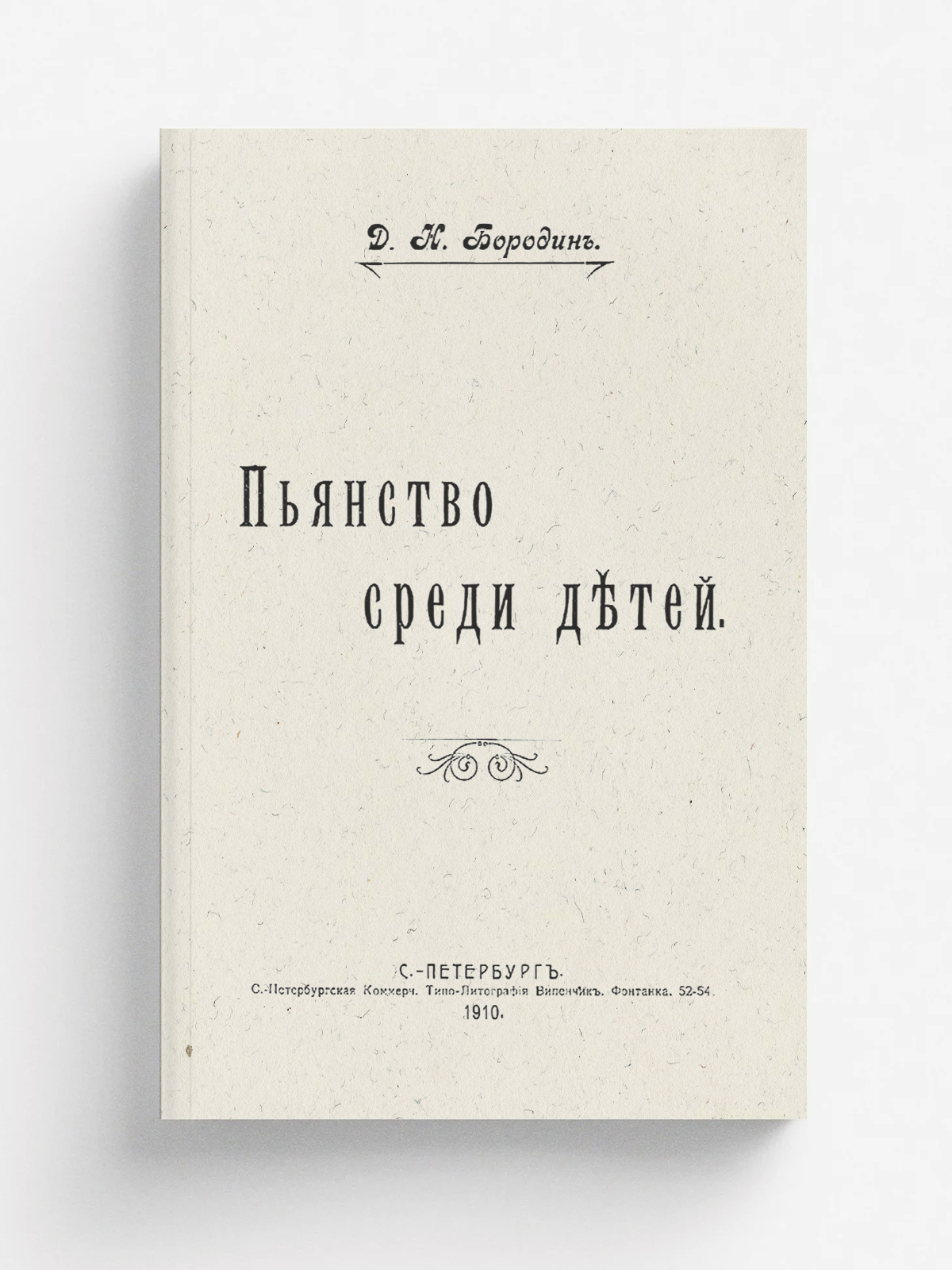 Бородин, Дмитрий Николаевич. Пьянство среди детей / Д. Н. Бородин. — Санкт-Петербург : С.-Петерб. коммерч. типо-лит. М. Виленчик, 1910. — 120 с. : ил.; 22.
