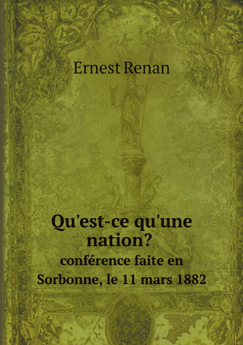 Печатная книга «Qu'est-ce qu'une nation? conférence faite en Sorbonne, le 11 mars 1882» в мягкой обложке, язык - французский. В книге 36 страниц, она напечатана на белой офсетной бумаге плотностью 80 г/м². Формат издания — 148x210 мм. Все книги аккуратно упаковываем в прочный трёхслойный непрозрачный картонный конверт.