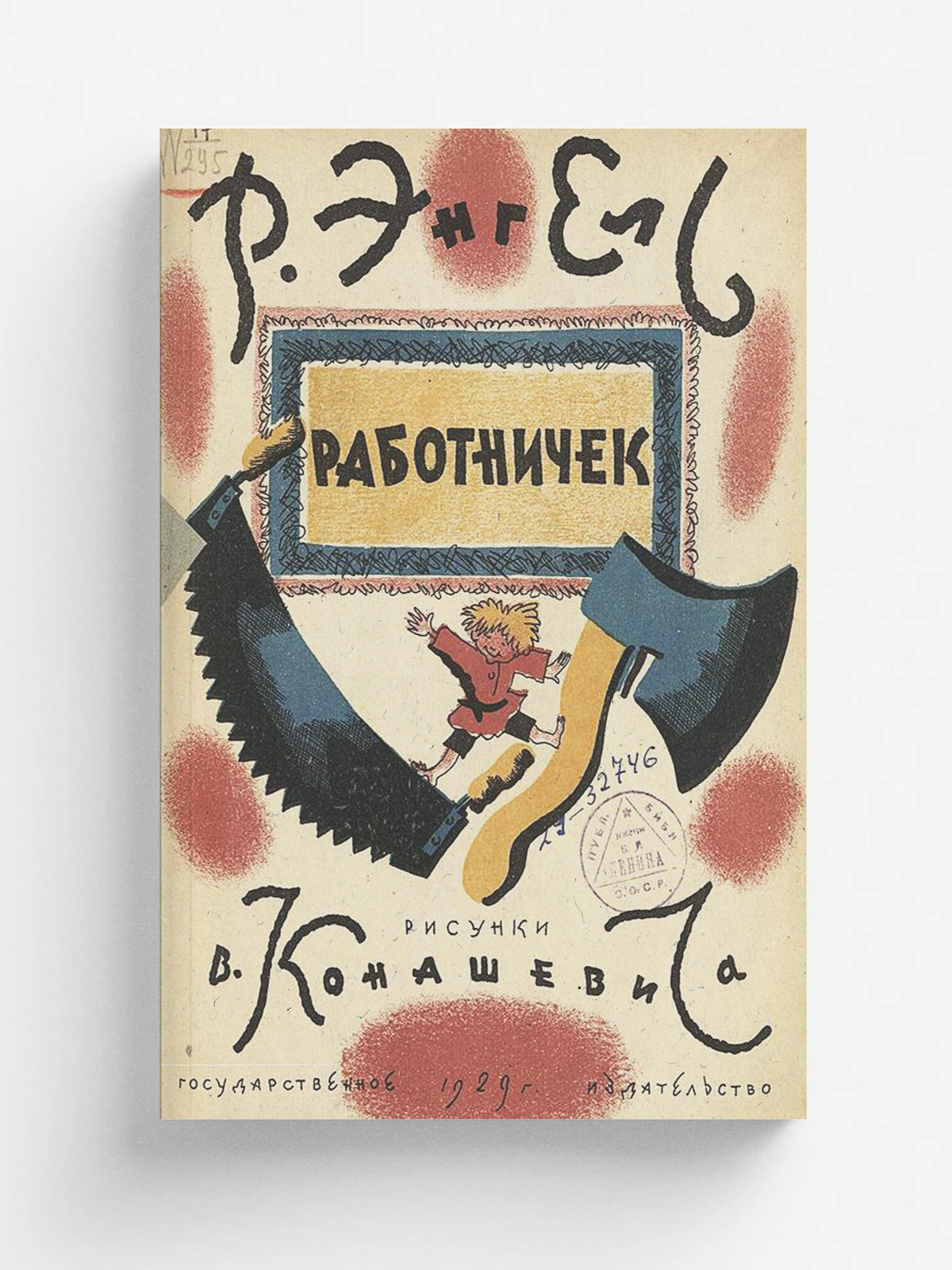 Энгель, Рашель Абрамовна (1900–1944). Работничек / Р. Энгель ; рисунки В. Конашевича. — [Москва] : Гос. изд-во, 1929 (1-я Образцовая типо-лит.). — [12] с. : цв. ил.; 20 см.