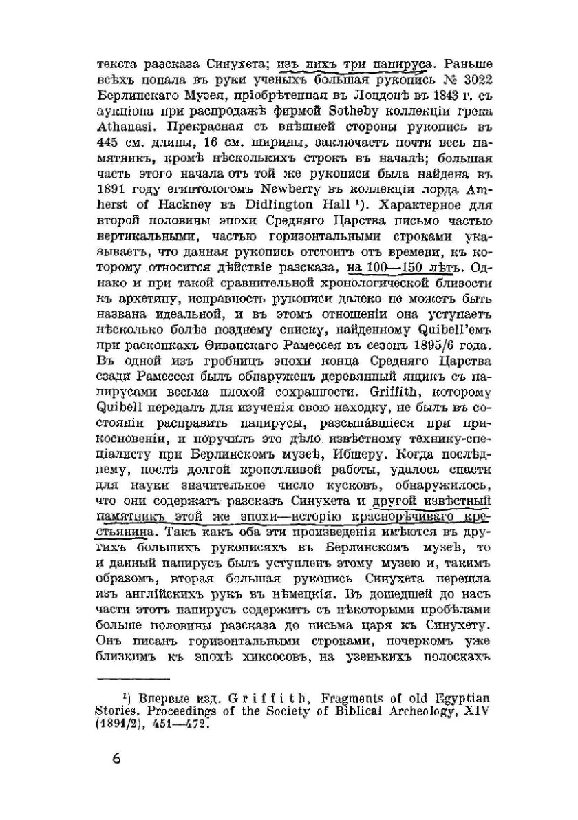 Первый полный перевод на русский язык памятника письменности эпохи Среднего царства можно считать образцом реалистического романа в египетской литературе.В увлекательном рассказе все естественно и соответствует эпохе и действительности, начиная с формы, которая заимствована из надгробных надписей биографического характера. Это живой литературный памятник, повествующий и о внутренних переживаниях своего героя-египтянина Синухета, и о внешних событиях его жизни, и о бытовых картинах. Как типичный образец классической литературы этого периода «Рассказ» не обходит вопросы, касающиеся политического и социального строя, домашнего уклада, нравственных требований и т.д.Литературные достоинства памятника бесспорны, что обусловило его широкую распространенность и популярность.Репринтное издание по технологии print-on-demand с оригинала 1915 года