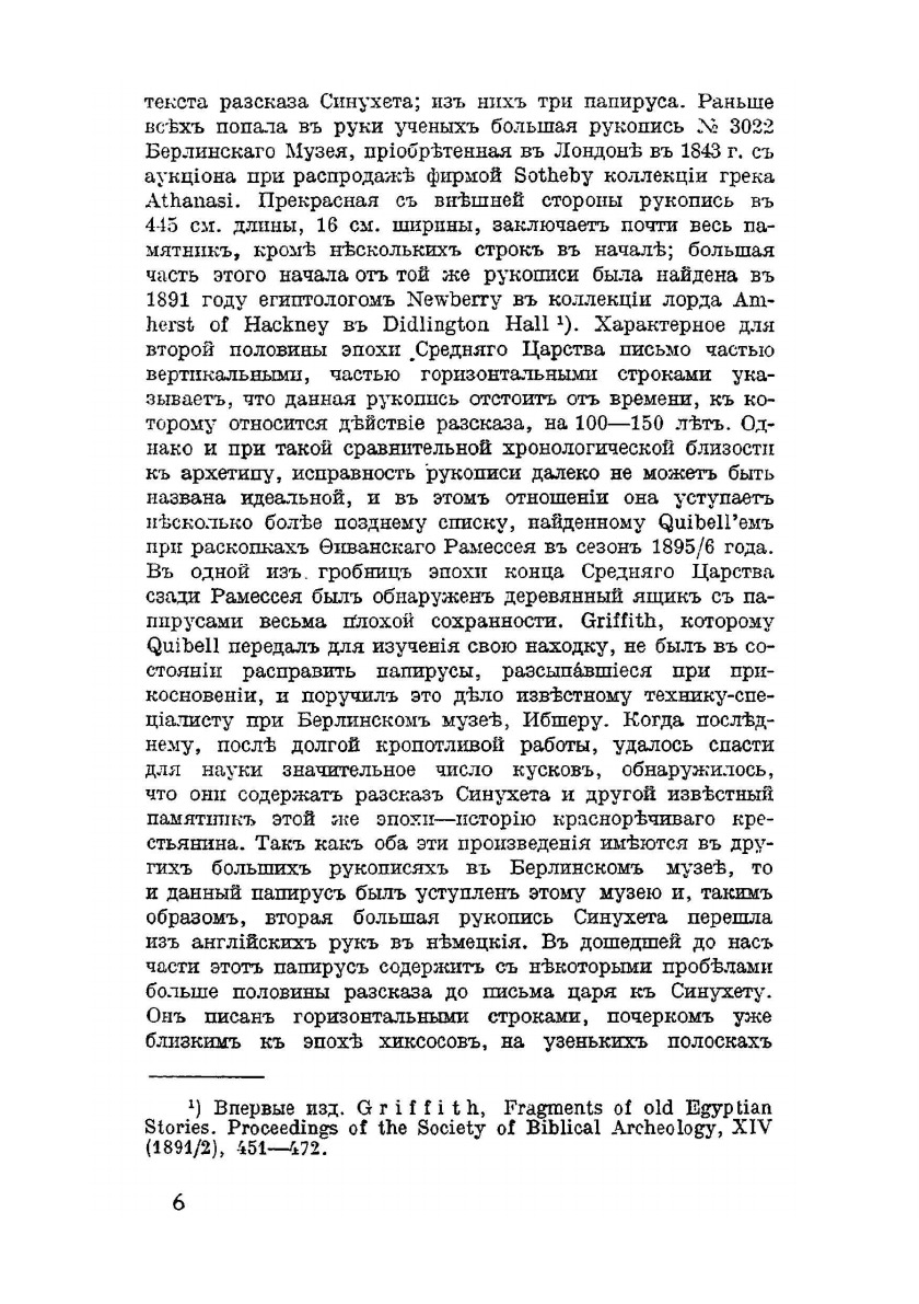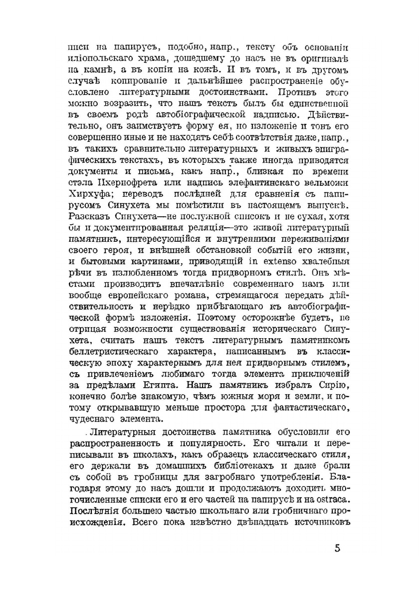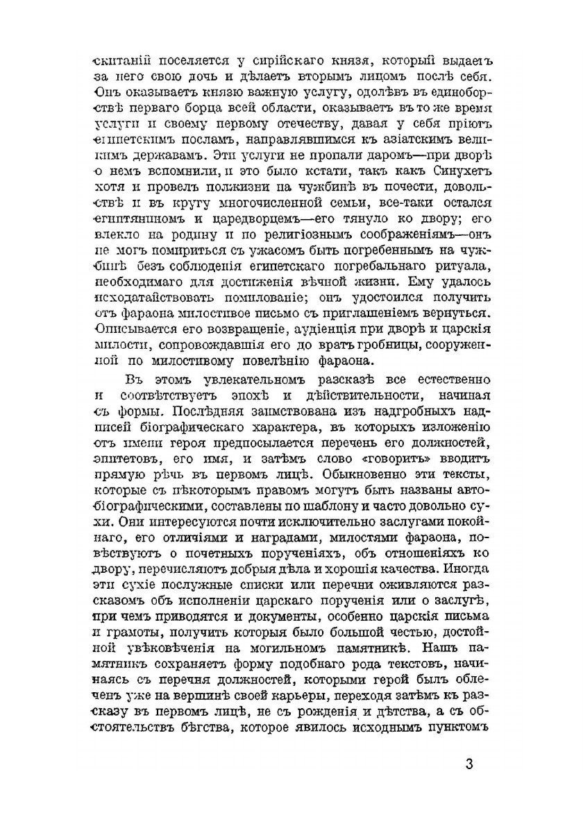 С рисунками. Серия "Культурно-исторические памятники Древнего Востока" выпуск 3. Под общей редакцией проф. В. А. Тураева.Первый полный перевод на русский язык памятника письменности эпохи Среднего царства можно считать образцом реалистического романа в египетской литературе. В увлекательном рассказе все естественно и соответствует эпохе и действительности, начиная с формы, которая заимствована из надгробных надписей биографического характера. Это живой литературный памятник, повествующий и о внутренних переживаниях своего героя-египтянина Синухета, и о внешних событиях его жизни, и о бытовых картинах. Как типичный образец классической литературы этого периода Рассказ не обходит вопросы, касающиеся политического и социального строя, домашнего уклада, нравственных требований и т.д.