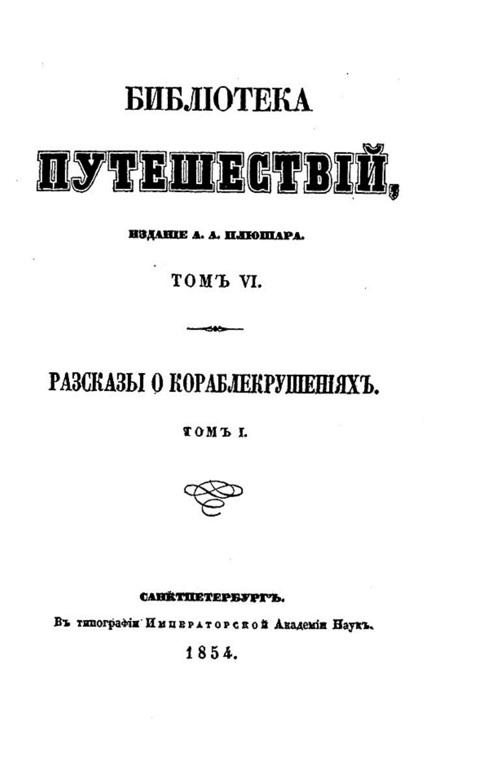 Рассказы о кораблекрушениях Т. 1. — Санктпетербург, 1854.