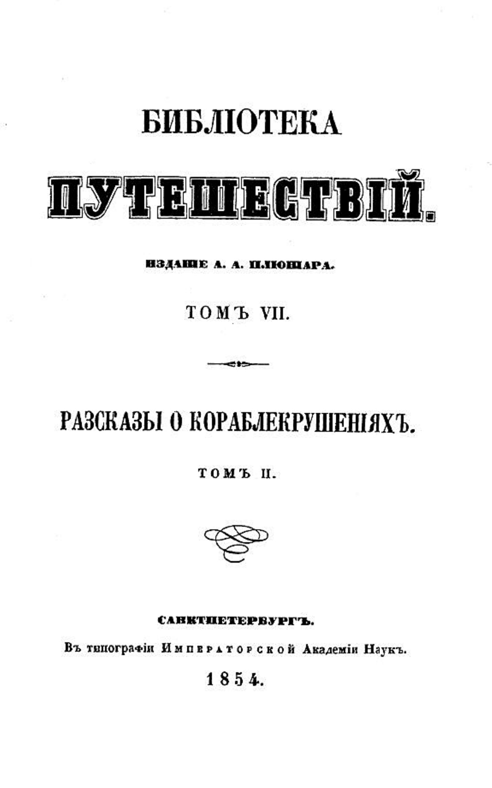 Рассказы о кораблекрушениях. Т. 2. - СПб., 1854.