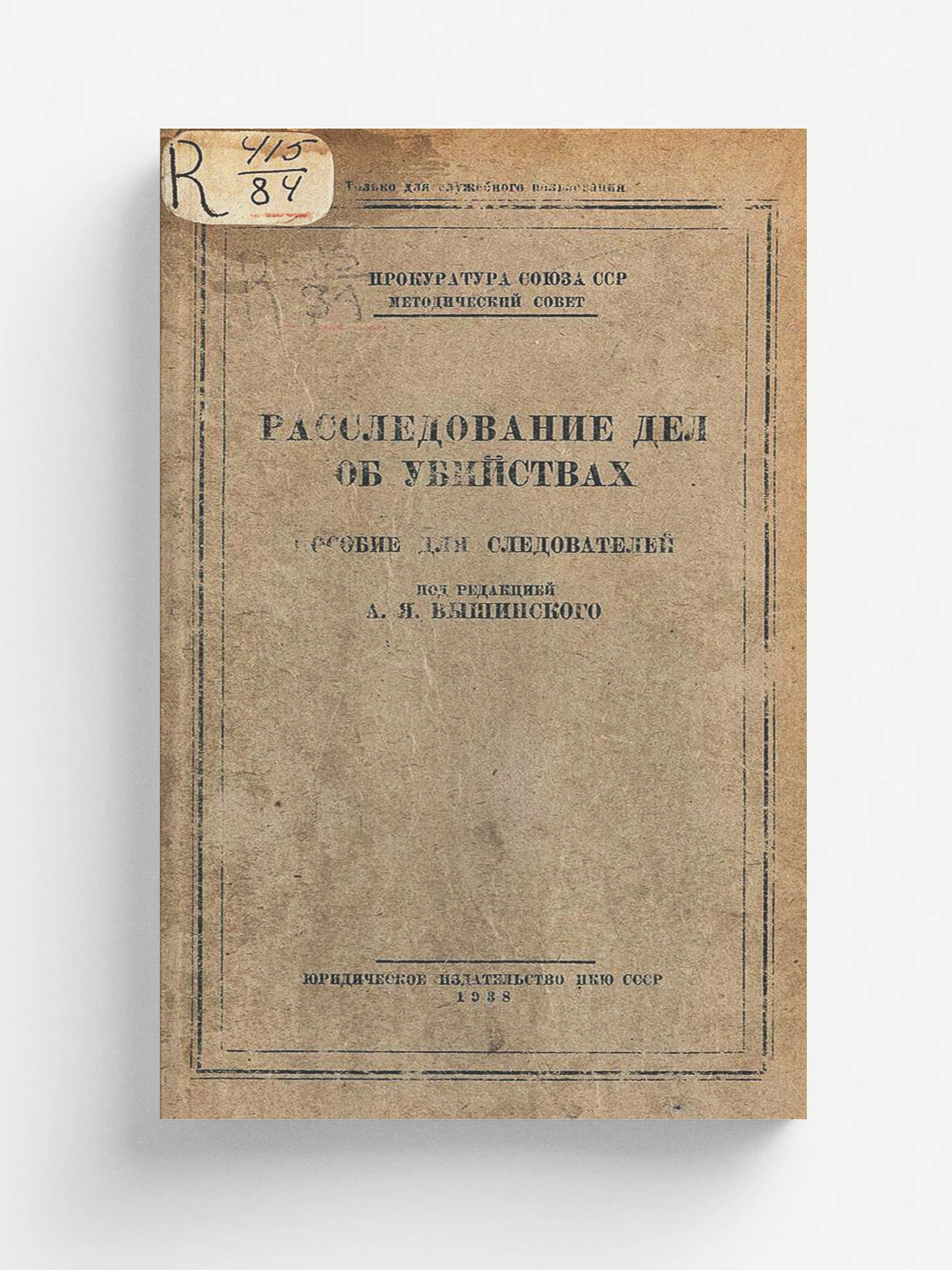 Громов, Владимир Устинович. Расследование дел об убийствах : Пособие для следователей / Авторами книги являются: Вл. Громов, В. Кочубинский и В. Савицкий» ; Под ред. А. Я. Вышинского ; Прокуратура СССР, Метод. совет. — Москва : Юрид. изд-во, 1938 (17 ф-ка нац. книги). — 186 с. : ил.; 23 см.