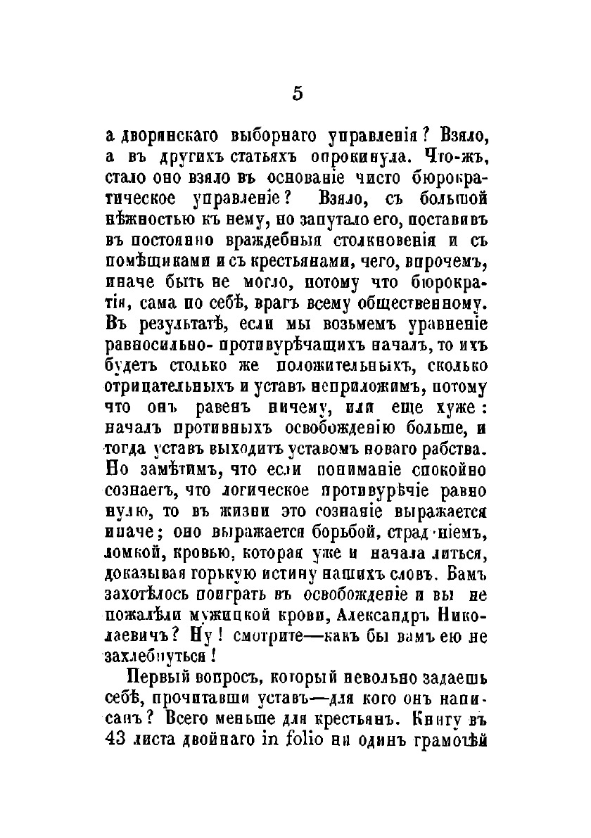 Разбор нового крепостного права, обнародованного 19 февраля 1861 года в положениях о крестьянах, вышедших из крепостной зависимости. Сочинение Н. Огарева. Лондон, Trübner & Co, Вольная русская типография, 1861 год.