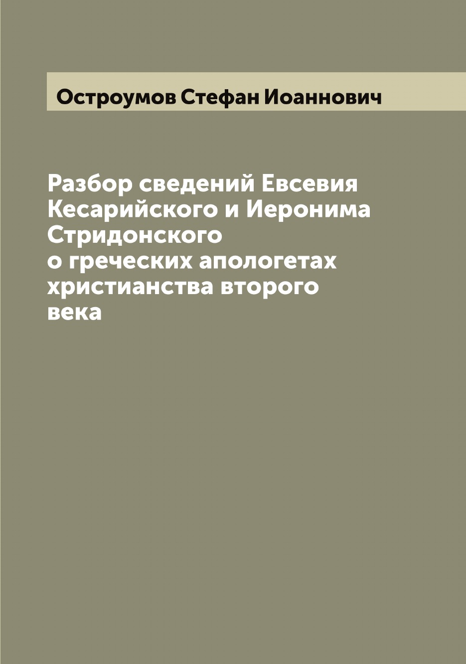 Печатная книга «Разбор сведений Евсевия Кесарийского и Иеронима Стридонского о греческих апологетах христианства второго века» в мягкой обложке, язык - русский. В книге 224 страниц, она напечатана на белой офсетной бумаге плотностью 80 г/м². Формат издания — 165x235 мм. Все книги аккуратно упаковываем в прочный трёхслойный непрозрачный картонный конверт.