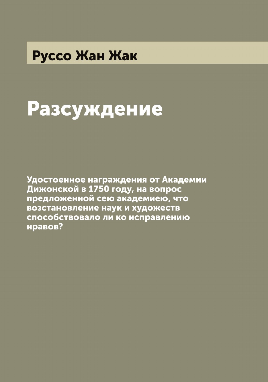 Печатная книга «Разсуждение, Удостоенное награждения от Академии Дижонской в 1750 году, на вопрос предложенной сею академиею, что возстановление наук и художеств способствовало ли ко исправлению нравов?» в мягкой обложке, язык - русский. В книге 80 страниц, она напечатана на белой офсетной бумаге плотностью 80 г/м². Формат издания — 165x235 мм. Все книги аккуратно упаковываем в прочный трёхслойный непрозрачный картонный конверт.