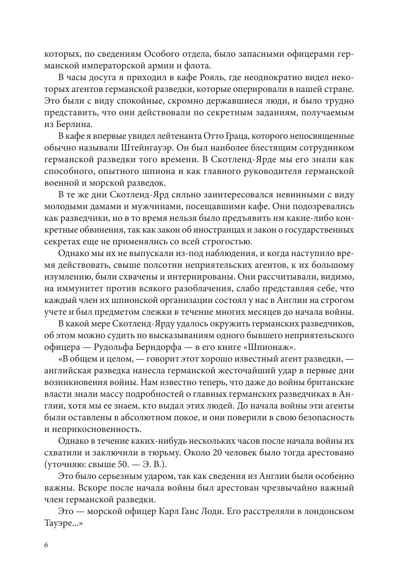 "Разведчики мировой войны" Эдвина Вудхолла - книга, рисующая методы и приемы шпионской работы Германии, Англии и Франции в империалистическую войну 1914-1918 гг."Герман-Австрийская разведка в царской России" Д.Сейдаметова и Н. Шляпникова - о деятельности шпионских организаций, о методах их работы, о применявшихся ими способах вербовки в свою сеть виднейших царских чиновников и офицерства и о перестройке работы Германовн-австрийской разведки после начала войны.