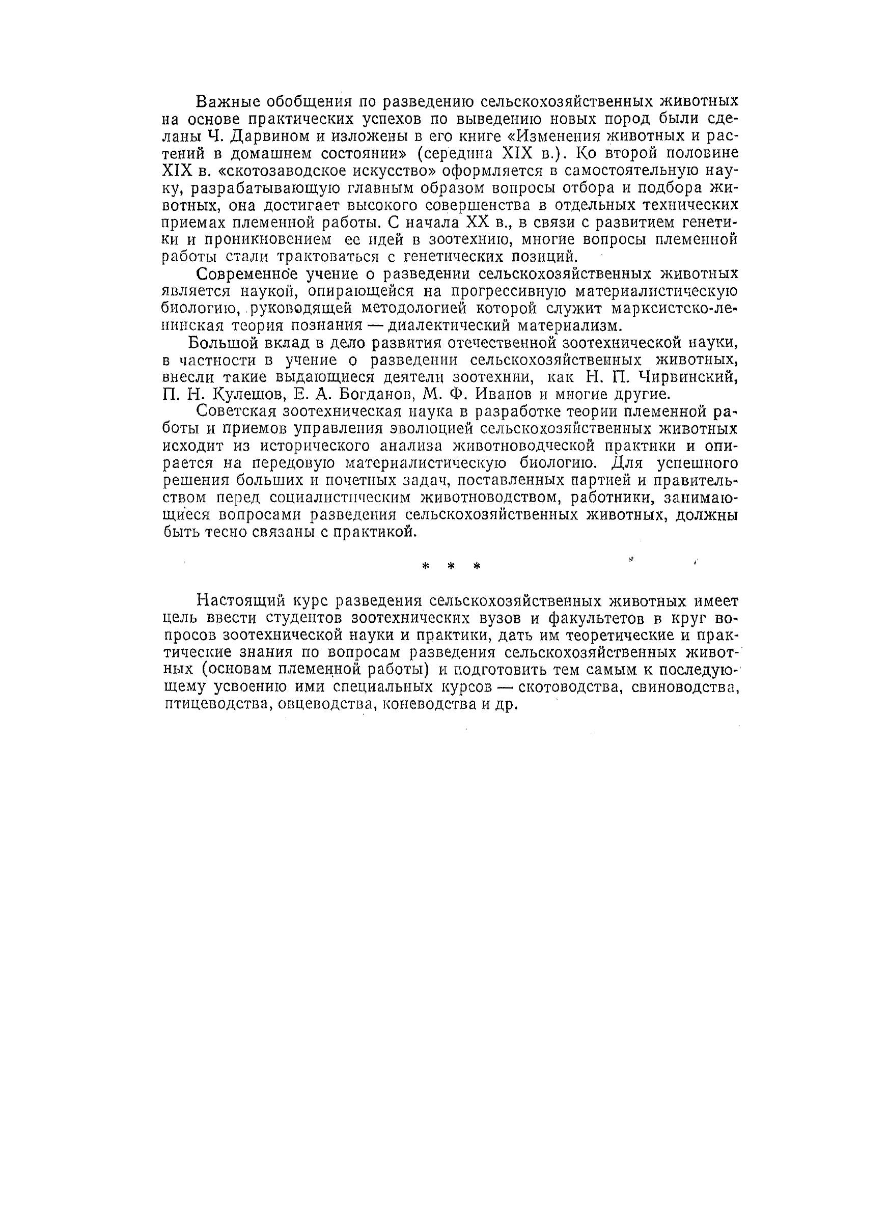 Настоящий учебник имеет цель ввести студентов зоотехнических вузов и факультетов в круг вопросов зоотехнической науки и практики, дать им теоретические и практические знания по вопросам разведения сельскохозяйственных животных (основам племенной работы) и подготовить тем самым к последующему усвоению ими специальных курсов - скотоводства, свиноводства, птицеводства, овцеводства, коневодства и др.В книге рассматриваются такие вопросы, как происхождение и развитие животноводства и зоотехнии, конституция и экстерьер сельхоз животных, их индивидуальное развитие и продуктивность, понятия об отборе, учение о породе, методы и орг. мероприятия по разведению.Книга предназначена для студентов зоотехнических вузов и факультетов сельскохозяйственных вузов.