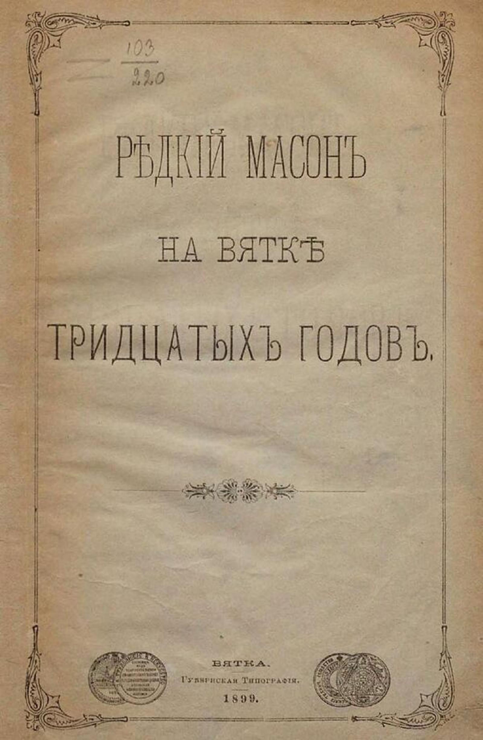 Верещагин, Александр Степанович (1835–1908). Редкий масон на Вятке тридцатых годов : [О А. Н. Муравьеве] / [А. В.]. — Вятка : Губ. тип., 1899. — 24 с.; 22.