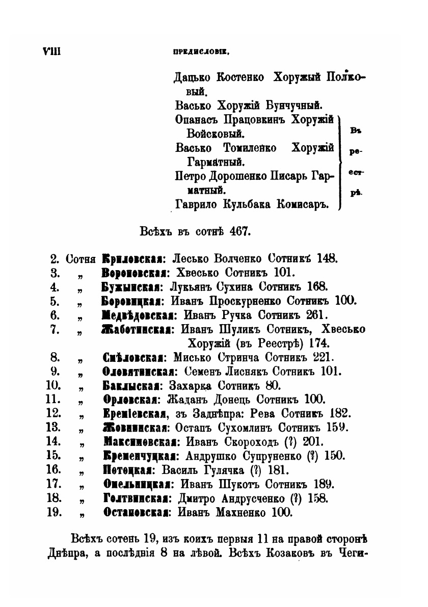 Зборовский мир был подписан 17-18 августа 1649 года между гетманом Богданом Хмельницким и польским королем Яном Казимиром. Основные положения: Войско Запорожское получает контроль над Киевским, Черниговским и Брацлавским воеводствами; реестр казаков увеличивается до 40 тыс.; коронному войску и евреям запрещается находиться на землях, которые контролирует Войско Запорожское; правительственные посты в казацких воеводствах разрешается занимать только казацкой старшине и православной шляхте.Реестр войска Запорожского издан по подлиннику О.М. Бодянским.