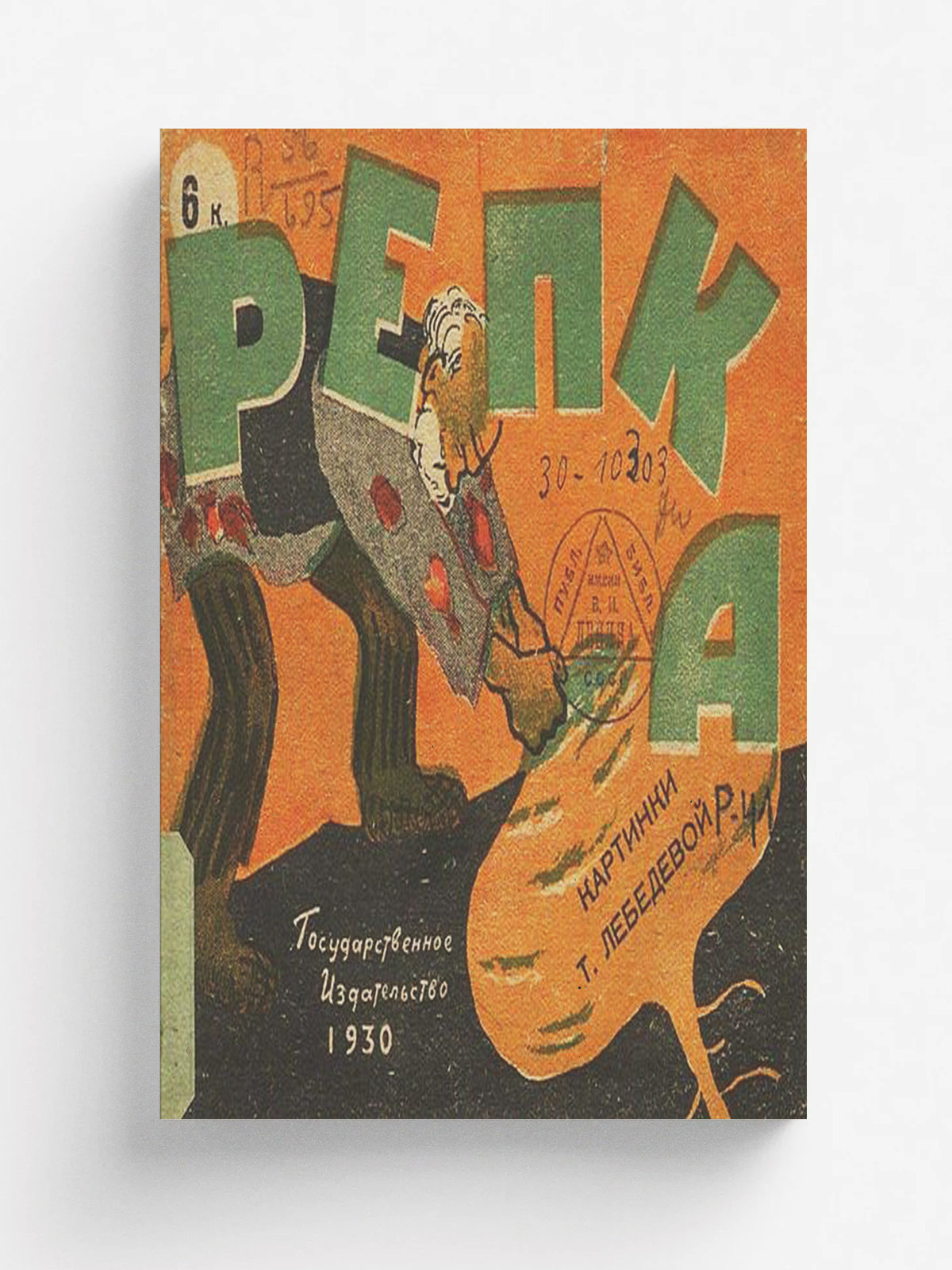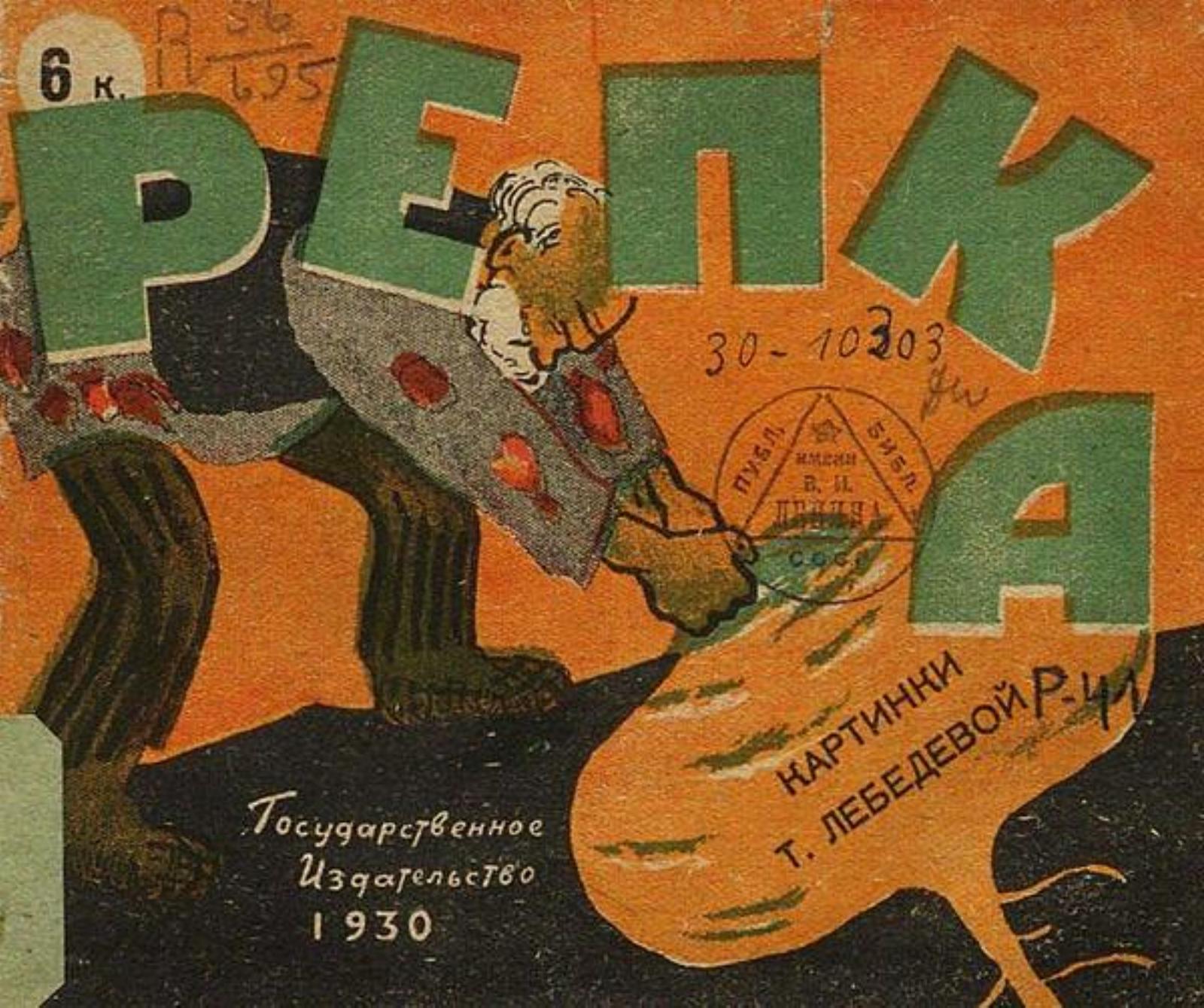 Репка / картинки Т. Лебедевой. — [2-е изд.]. — Москва : Гос. изд-во ; Ленинград : Гос. изд-во, 1930. — 11 с. : цв. ил.; 12x14 см. Без тит. с. Описано по обл.