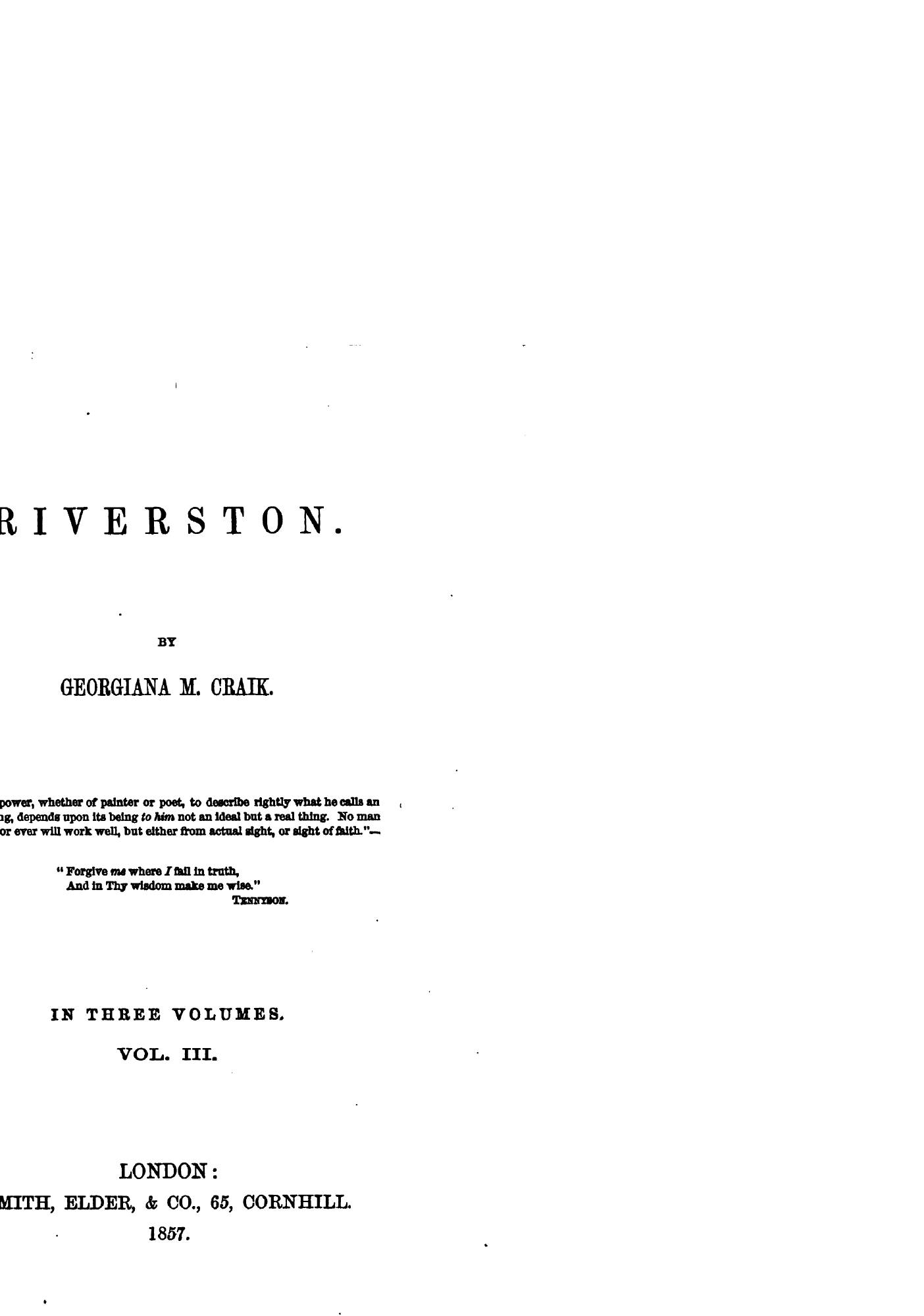 Riverston is a three-volume novel that explores themes of love, family, and social hierarchy in 19th-century England. The story follows the lives of three orphaned siblings—the Rivers family—residing in the village of Riverston. The eldest brother, Edward, faces challenges in maintaining the family’s reputation and financial stability, while his sisters navigate societal expectations and personal desires.