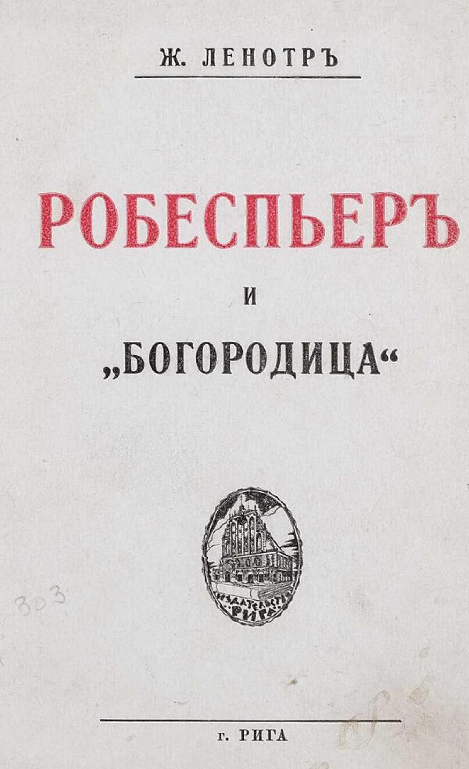 Ленотр, Жорж (1857–1935). Робеспьер и «богородица» : Революционный мистицизм / Ж. Ленотр ; Пер. с фр. А. В. Коссовича. — Рига : Рига, [1930-е]. — 297 с.; 20 см.