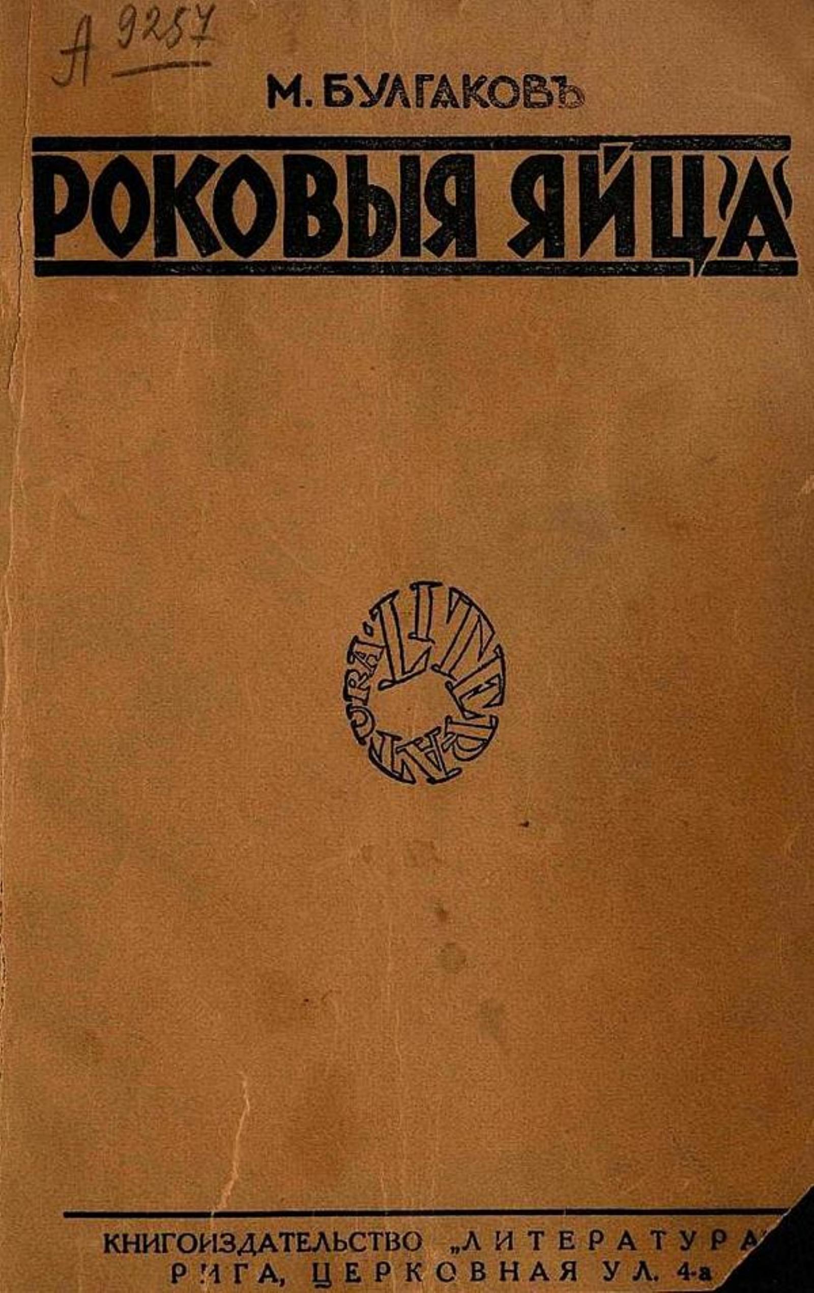 Булгаков, Михаил Афанасьевич. Роковые яйца / Вступ. ст. П. Пильского. — Рига : Литература, 1928. — 184 с.; 19 см.