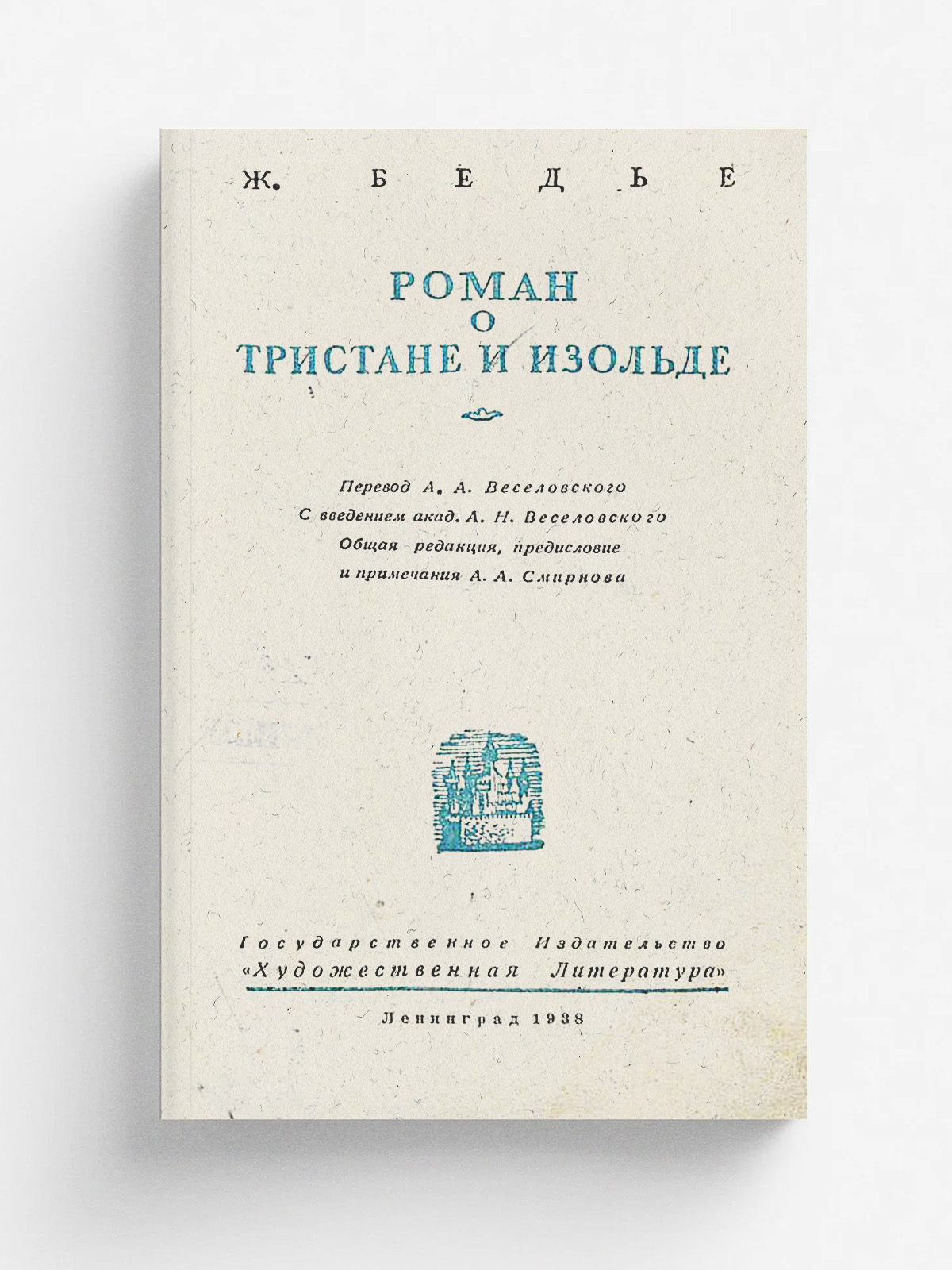 Бедье, Жозеф. Роман о Тристане и Изольде [Текст] / Пер. А. А. Веселовского ; С введ. акад. А. Н. Веселовского ; Общ. ред., предисл. «Роман о Тристане и Изольде» и прим. А. А. Смирнова ; Худож.: С. В. Верховский. — Ленинград : Гослитиздат, 1938 (Тип. «Лен. правда»). — 228 с., 1 вкл. л. ил.; 17 см.