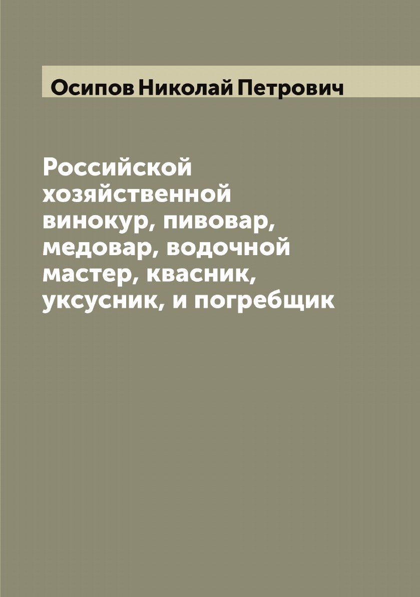 Печатная книга «Российской хозяйственной винокур, пивовар, медовар, водочной мастер, квасник, уксусник, и погребщик» в мягкой обложке, язык - русский. В книге 292 страниц, она напечатана на белой офсетной бумаге плотностью 80 г/м². Формат издания — 148x210 мм. Все книги аккуратно упаковываем в прочный трёхслойный непрозрачный картонный конверт.