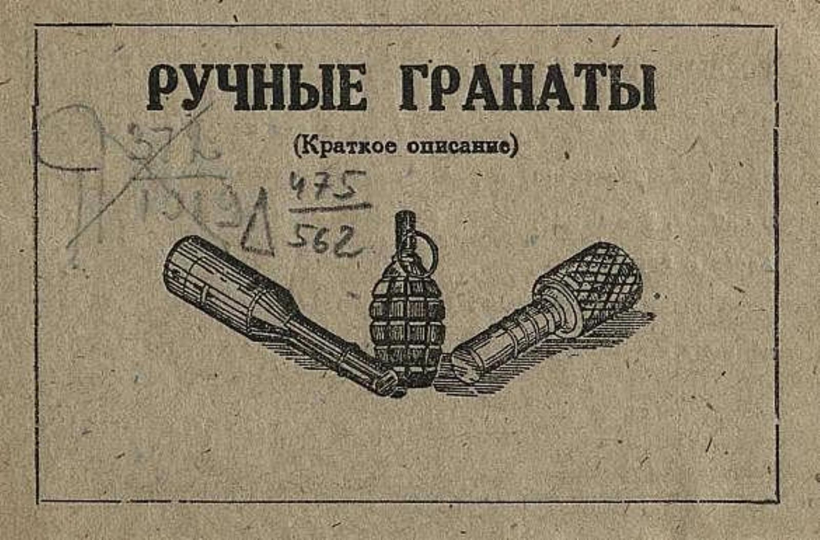Бунимович, Д. Ручные гранаты : (Краткое описание). — Тбилиси : «Динамо» Груз. ССР, 1943. — 16 с. : ил.; 7×11 см.