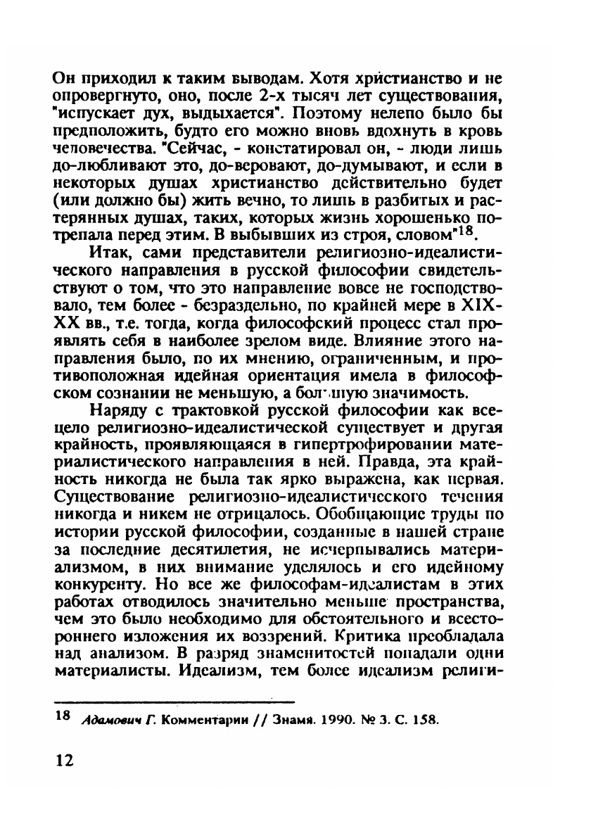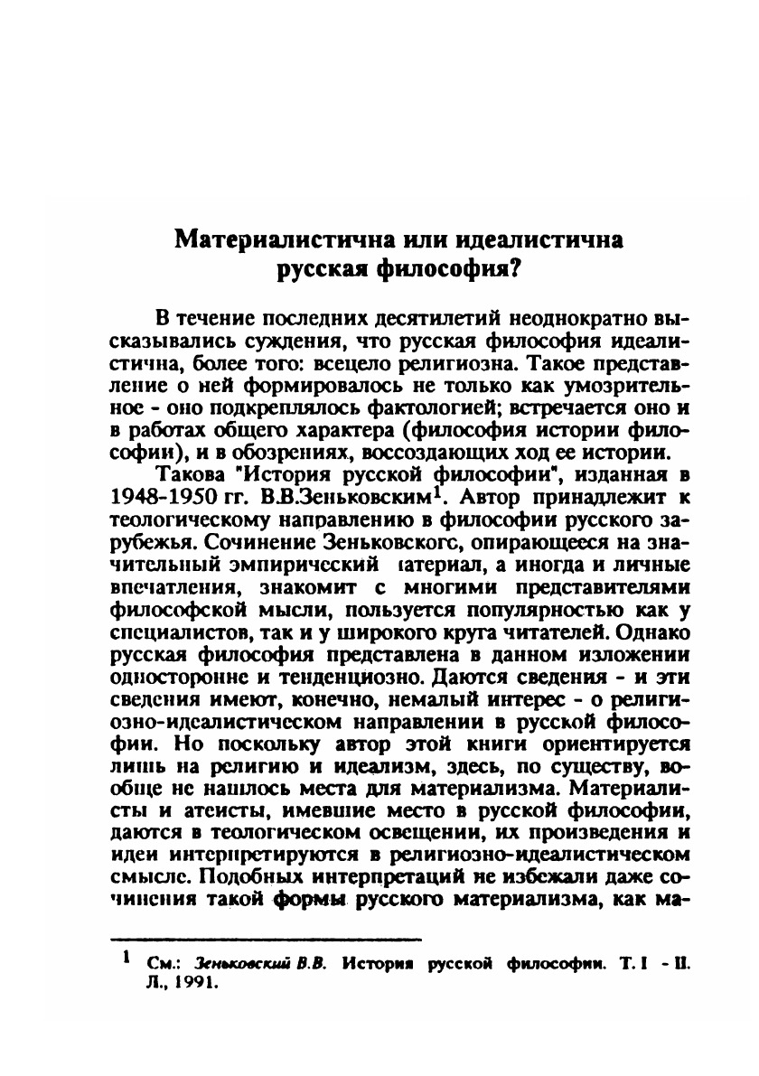 В книге дается анализ основных характерных признаков русской философии, позволяющих выделить ее как нечто особенное из общего контекста философских культур различных стран и народов. Обращается внимание на рассредоточенность философских идей в русском общественном сознании, большой пласт устной философии, персонификацию философских концепций в жизни и поведении их создателей, выпадение многих произведений из научного обихода сразу после написания и включение их впоследствии в иную философскую среду. Приведенные в книге материалы свидетельствуют, что ни одна другая философия, кроме русской, не содержит так много размышлений о судьбах своей страны.