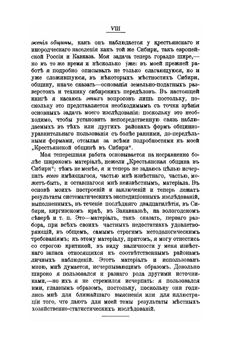 Сочинение А.А. Кауфмана «Русская община» посвящено изучению истории возникновения и развития крестьянской общины на Руси. Данная историческая проблема принадлежит к области аграрной истории. Кауфман применяет новую методику в исследовании общины. Так как письменные источники по данному вопросу были весьма скудны, он обратился к «живой истории» развитья современных общин у крестьян глухих северных районов, и у народов России, живущих общинным строем. Этот метод, который исследователь называет «методом переживаний», позволял воочию наблюдать процесс сложения общины у современных народов, живущих традиционным способом, и переносить модель процесса на далекое прошлое. Автор исследовал крестьянские общины Сибири, а также проанализировал данные сплошных статистических исследований землепользования и хозяйства киргиз, сделанных под руководством Ф.А. Щербины. В настоящей работе А.А. Кауфман ставит целью проследить процесс сложения общины, как он наблюдается у крестьянского и инородческого населения как той же Сибири, так европейской России и Кавказа. Исследование было выполнено на основе чрезвычайно богатого материала, собранного в течение двадцати лет систематических экспедиций (районами изучения стали Сибирь, киргизские степи, Закавказье, вологодский север и другие регионы).