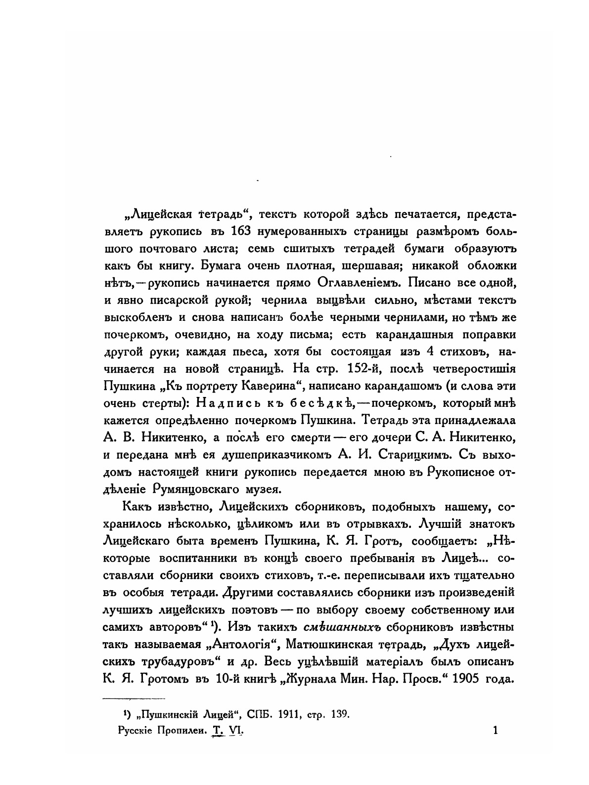 Материалы по истории русской мысли и литературы. Собрал и приготовил к печати М. Гершензон. Том содержит два раздела: 1: Публикация "Лицейской тетради" Пушкна и 2: Публикация записей Александра Николаевича Скрябина. Публикация подготовлена Сергеем Нестеровым.