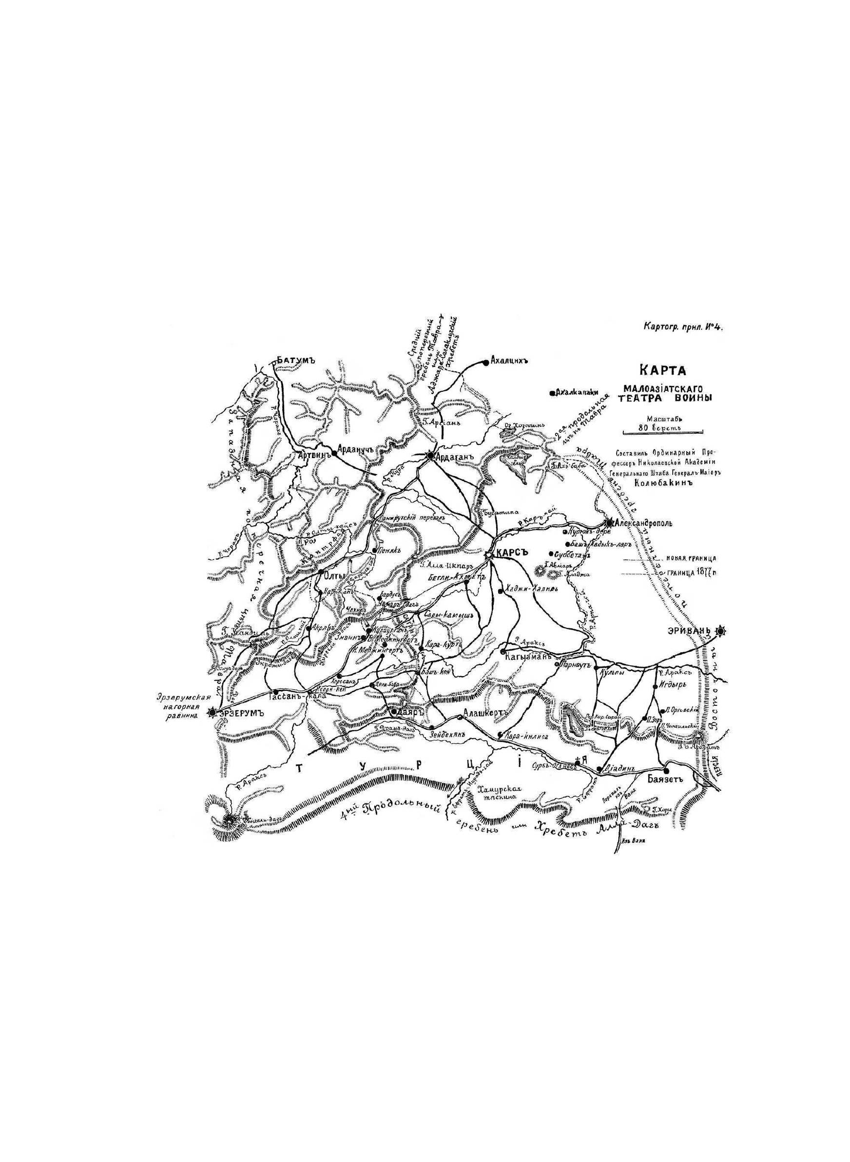 Колюбакин Борис Михайлович (1853–1924) — военный историк и писатель, генерал-лейтенант, участник русско-турецких войн, впоследствии — профессор Николаевской академии Генерального штаба. Его перу принадлежит ряд военно-исторических исследований и работ, большей частью посвященных войне с Турцией. Среди них — «Эриванский отряд в кампанию 1877–1878 гг.», «Воспоминания офицера Кобулетского отряда в кампании 1877–1878 гг.», «Конспект Русско-турецкой войны 1877–1878 гг.». В представленном сочинении изложены исторические аспекты, архивные материалы и хронология событий одной из кавказских войн, наименее освещенной в трудах и исследованиях военных историков прошлых лет. Книгу дополняет альбом, содержащий карты и планы размещения русских и турецких войск, а также военных действий и боевых операций кампании. По задумке автора это сочинение должно было состоять из нескольких частей, однако свет увидела лишь первая часть с приложениями.
