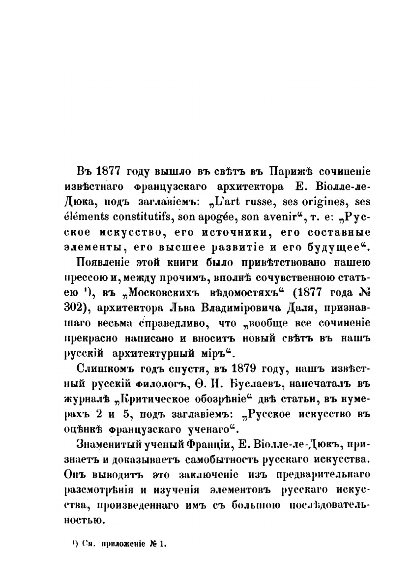 Русское искусство и мнения о нем Е.Виолле-ле-дюка, французского ученого архитектора и Ф.И.Буслаева, русского ученого археолога.