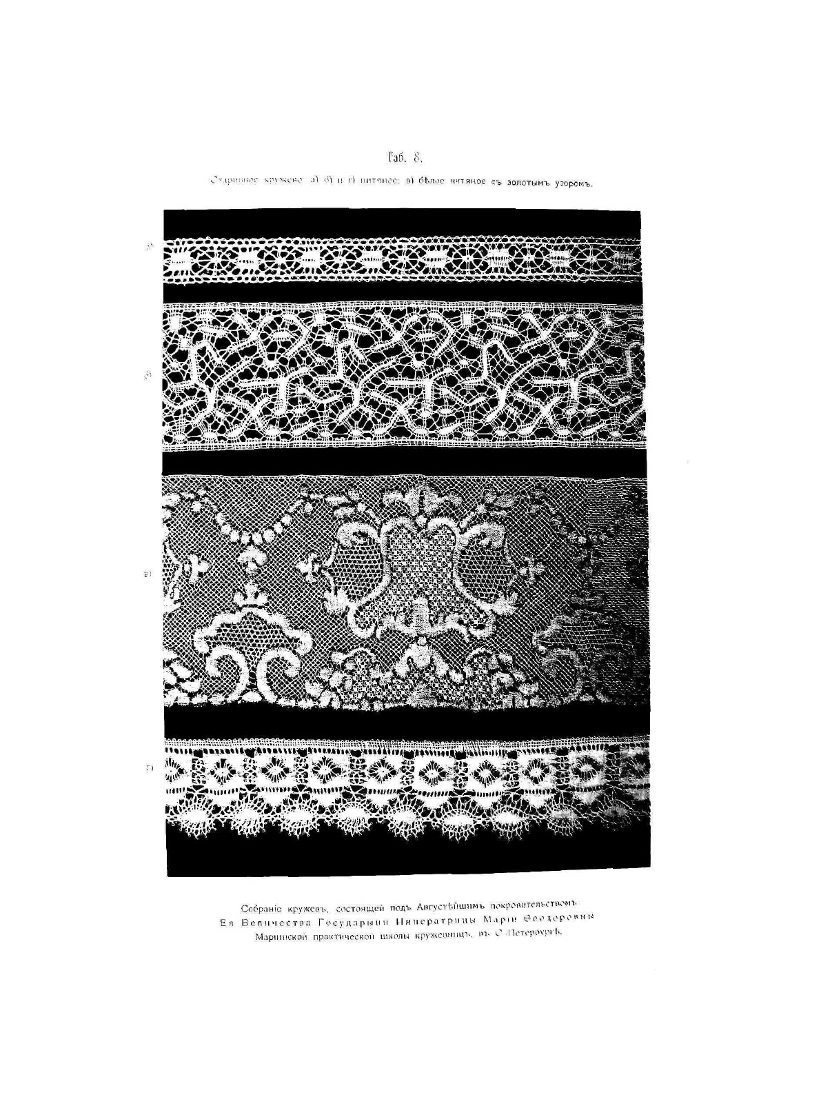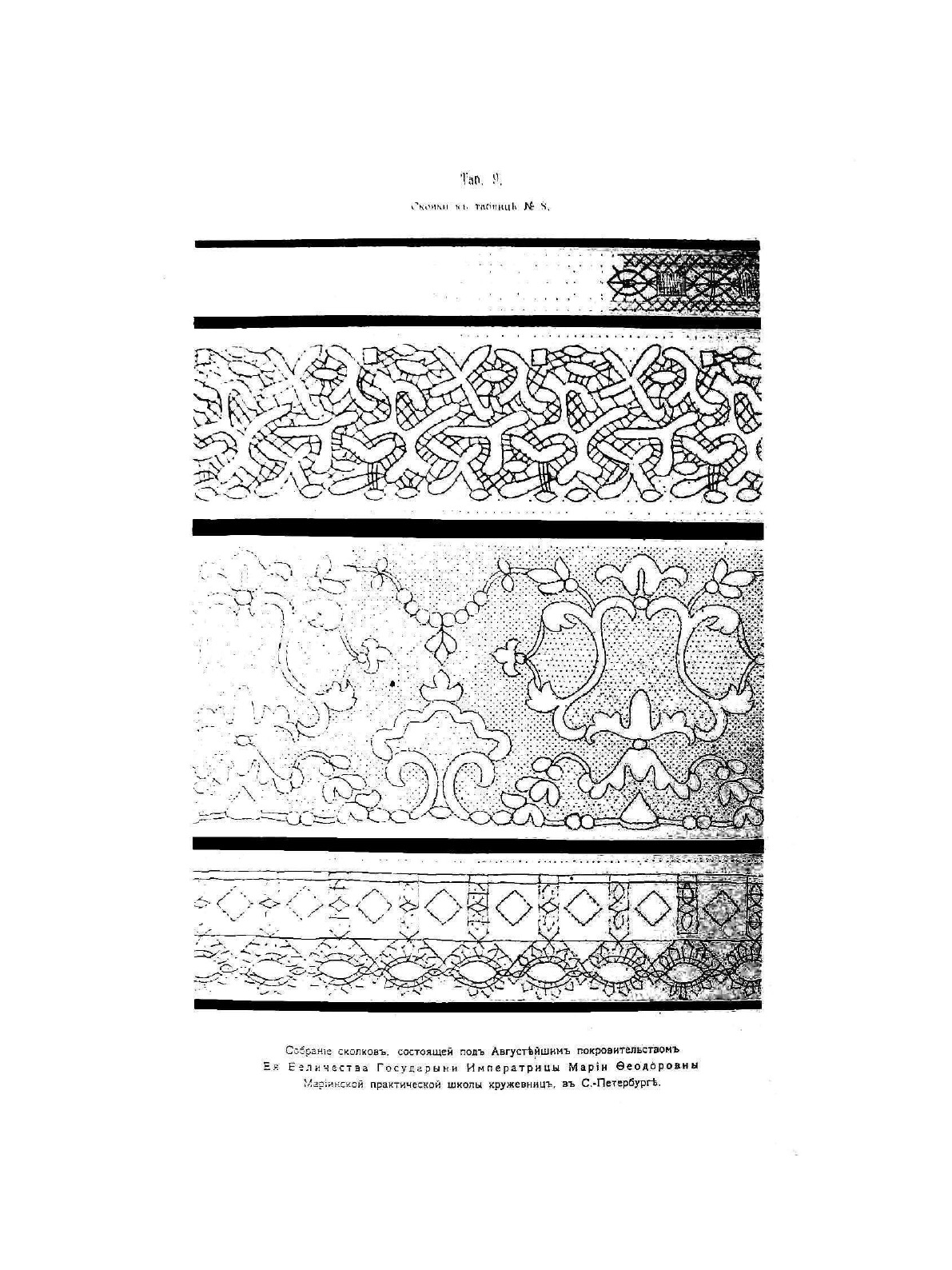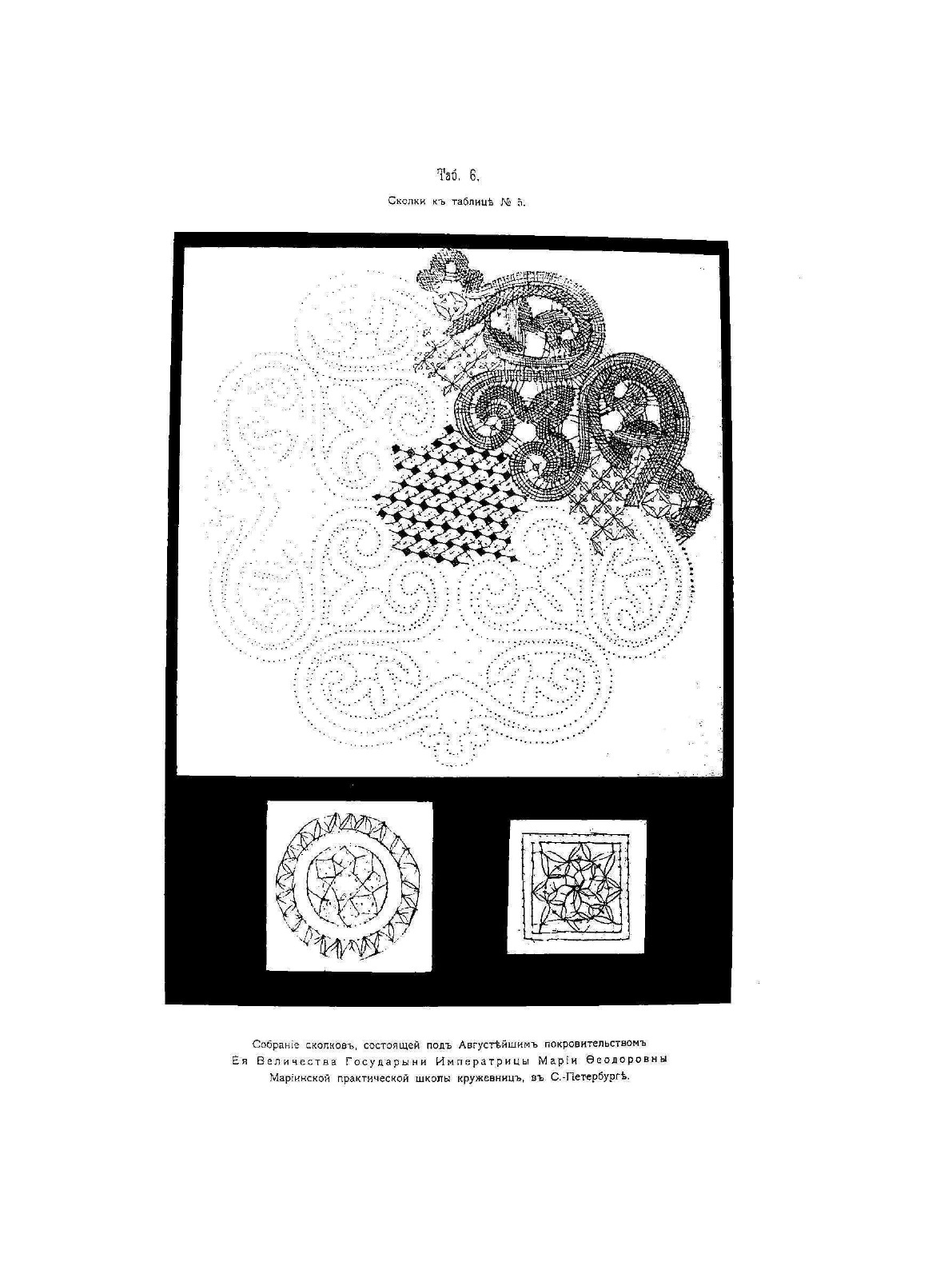 Раритетное издание книги известной собирательницы и популяризатора кружев Софьи Давыдовой. В этой книге представлены образцы русского кружева и сколки к ним. Книга перекликается с ещё одной книгой Давыдовой, "La Dentelle Russe" ("Русское кружево. Альбом"), изданной на французском языке. В отличие от предыдущего издания, в этом, к ряду образцов, имеются сколки. Стоит отметить богатство альбомов Софьи Давыдовой тем, что и ценнейший курс плетения "Учебной коллекции по плетению кружев" Н.Я. Эрихсон, изданной в 1913 году был подготовлен по образцам "Русское кружево. Узоры и сколки" с разработкой сколка к каждому образцу.