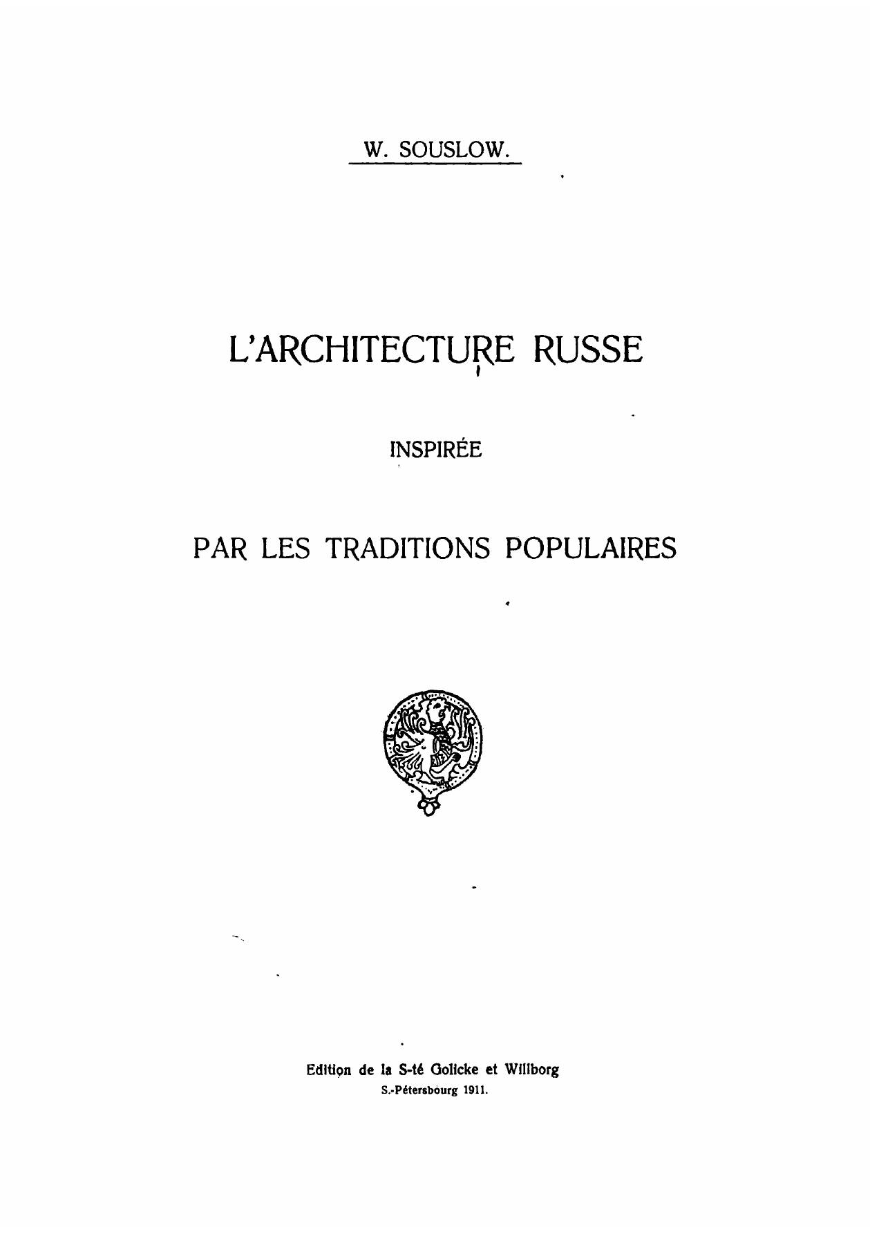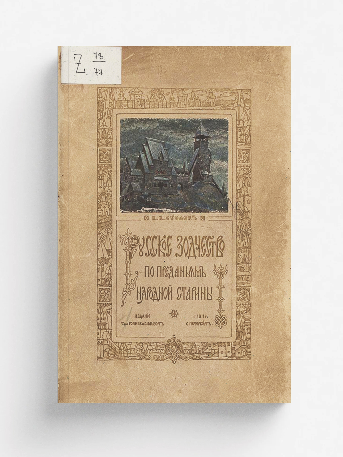 Суслов, Владимир Васильевич (1859–1921). Русское зодчество по преданиям народной старины / В. В. Суслов. — Санкт-Петербург : т-во Р. Голике и А. Вильборг, 1911. — [18] с., 54 с. ил.; 31.