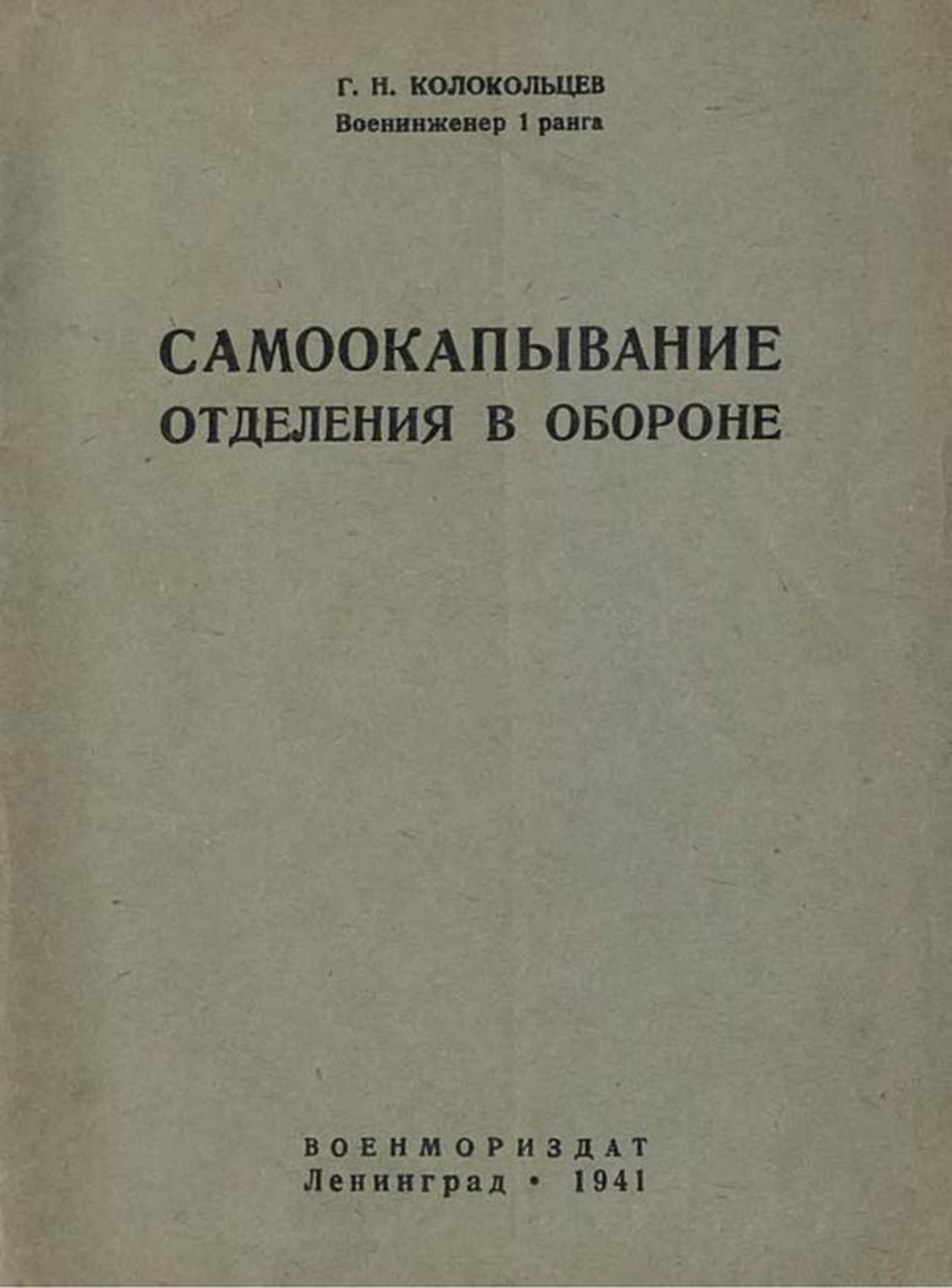 Военинженер 1 ранга Колокольцев Г. Н. «Самоокапывание отделения в обороне» Военмориздат. Ленингр. отд-ние (1941)