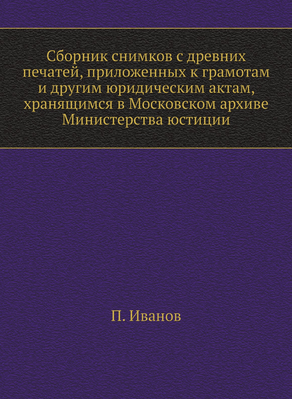 Печатная книга «Сборник снимков с древних печатей, приложенных к грамотам и другим юридическим актам, хранящимся в Московском архиве Министерства юстиции» в мягкой обложке, язык - русский. В книге 92 страниц, она напечатана на белой офсетной бумаге плотностью 80 г/м². Формат издания — 205x280 мм. Все книги аккуратно упаковываем в прочный трёхслойный непрозрачный картонный конверт.