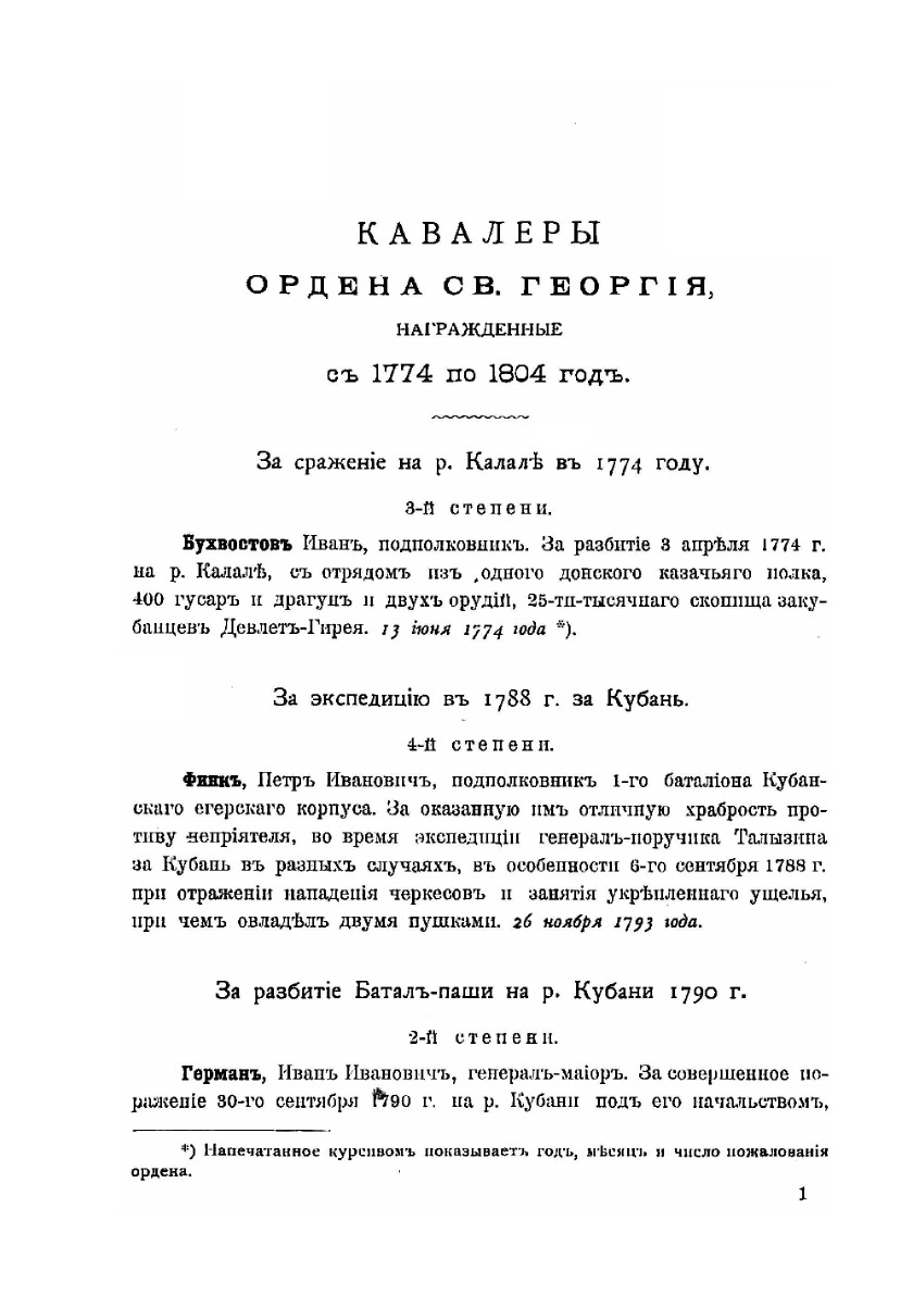 Представленное издание является органичной составной частью многолетней программы изучения боевых действий, устройства, организации и развития регулярных войск российской императорской армии на Кавказе, проводившейся военно-историческим отделом при штабе Кавказского военного округа. Ряд исследований на эту тему уже были помещены на нашем сайте.Настоящее исследование известного историка войн России на Кавказе генерал-майора в отставке А.Л. Гизетти, который в течение длительного времени занимался изучением этой темы, разделено автором на две части. Приведенные в первой части сведения о кавалерах, получивших орден Святого Георгия за воинские заслуги во время боевых действий на Кавказе, были собраны из указов Императора, постановлений георгиевских дум, журналов боевых действий, наградных представлений, находившихся среди документов архива штаба Кавказского военного округа и Военно-Ученого архива Генерального Штаба. Во второй части труда приведены данные о боевых знаках отличия, пожалованных частям российских войск, проходивших службу на Кавказе, а также вооруженным формированиям, созданным из представителей разных народов Кавказа.В книге приводятся данные о награждениях российских воинов и полководцев орденом Святого Георгия за успехи в боевой деятельности на Кавказе с момента учреждения этой высшей военной награды в 1774 г. вплоть до 1880-х гг. За более чем столетний период награждений всего было пожаловано этим высшим военным орденом 536 человек. Среди них первой и второй степенью ордена были удостоены главнокомандующие российскими войсками на Кавказе генерал-фельдмаршалы граф И.Ф. Паскевич-Эриванский и великий князь Михаил Николаевич.