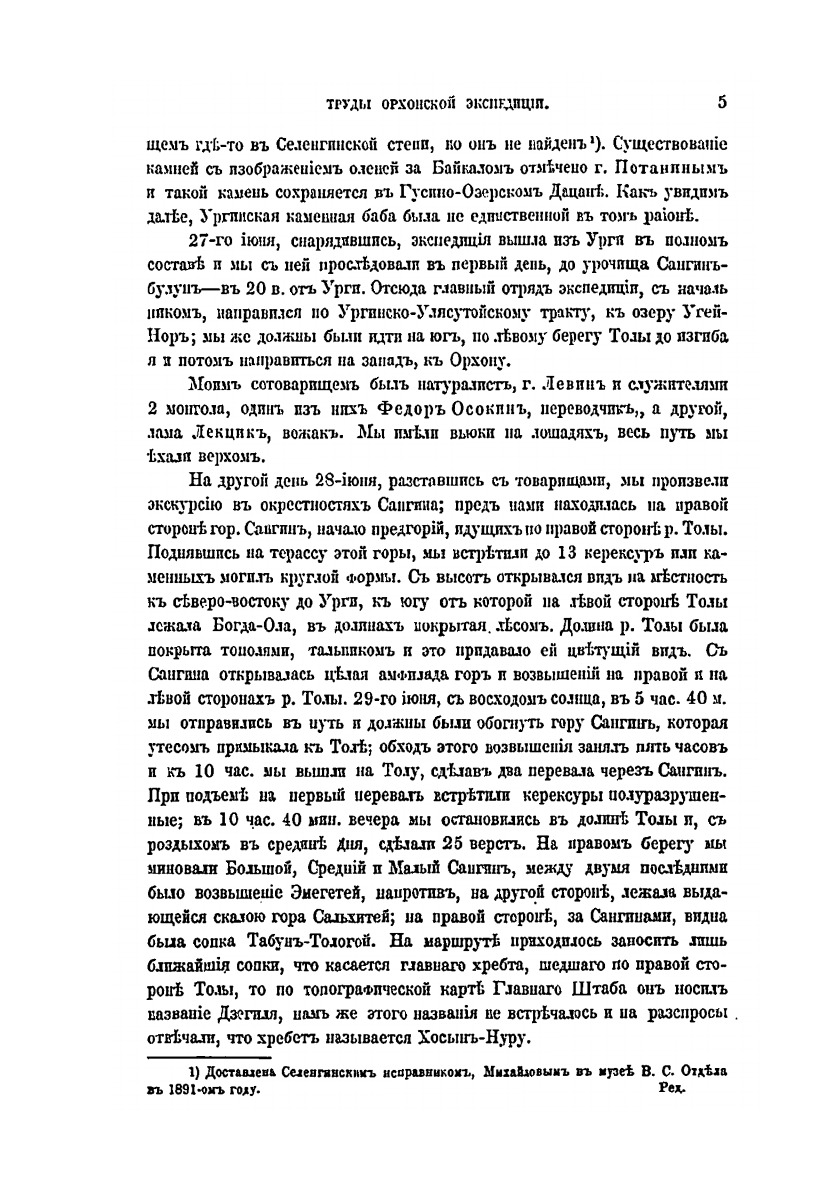 Печатная книга «Сборник трудов Орхонской экспедиции, V. Отчет и дневник о путешествии по Орхону и в Южный Хангай в 1891 году» в мягкой обложке, язык - русский. В книге 56 страниц, она напечатана на белой офсетной бумаге плотностью 80 г/м². Формат издания — 148x210 мм. Все книги аккуратно упаковываем в прочный трёхслойный непрозрачный картонный конверт.