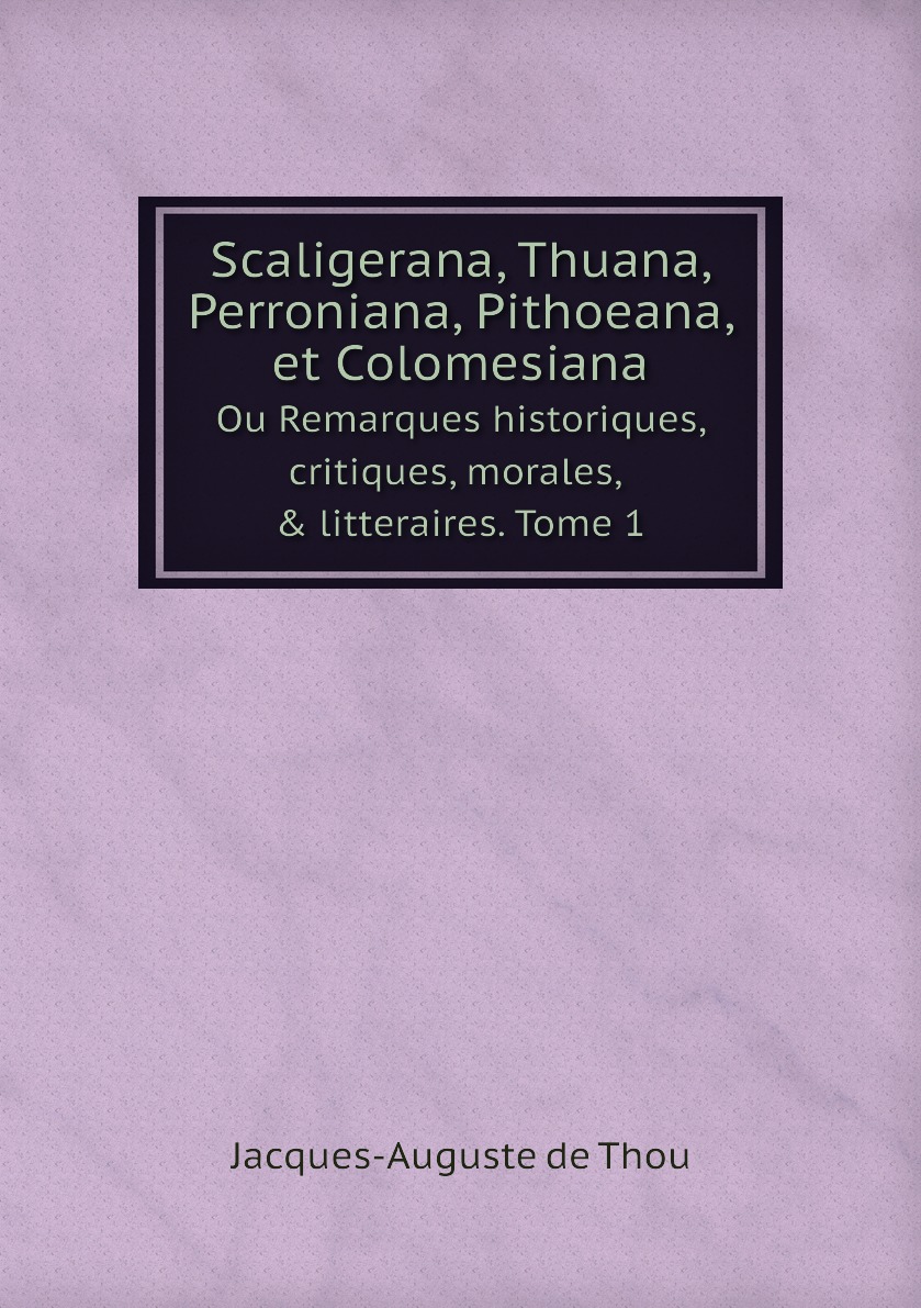 Печатная книга «Scaligerana, Thuana, Perroniana, Pithoeana, et Colomesiana, Ou Remarques historiques, critiques, morales, & litteraires. Tome 1» в мягкой обложке, язык - французский. В книге 642 страниц, она напечатана на белой офсетной бумаге плотностью 80 г/м². Формат издания — 148x210 мм. Все книги аккуратно упаковываем в прочный трёхслойный непрозрачный картонный конверт.