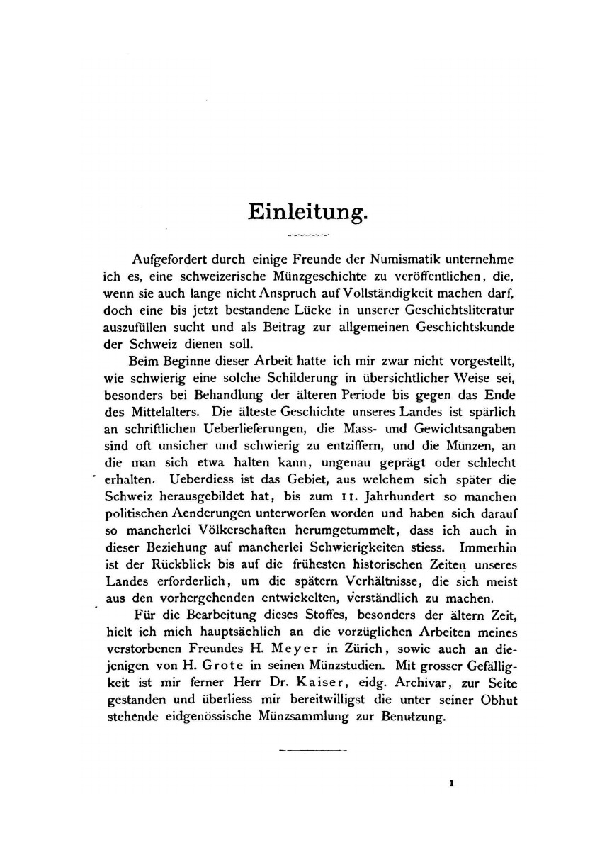 Schweizerische Münz- Und Geldgeschichte Von Den Ältesten Zeiten Bis Zur Gegenwart. Erster Band.