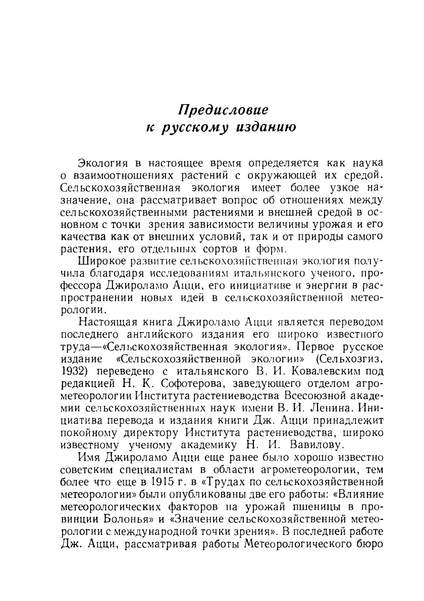 Автор книги - видный итальянский ученый, агроном и климатолог, основатель нового направления сельскохозяйственной экологии, основанного на количественной оценке влияния климатических факторов на сельскохозяйственные растения.На основе многолетних агрометеорологических данных автор для каждой фазы или периода развития того или иного растения определяет так наз. метеорологические эквиваленты влаги, тепла и др. климатических факторов.Это дает возможность оценить пригодность определенного почвенно-климатического района для успешной культуры того или иного растения, предусмотреть агротехнические мероприятия и т.д.Книга представляет большой интерес для агрономов и преподавателей сельхоз и пед. вузов и университетеов.