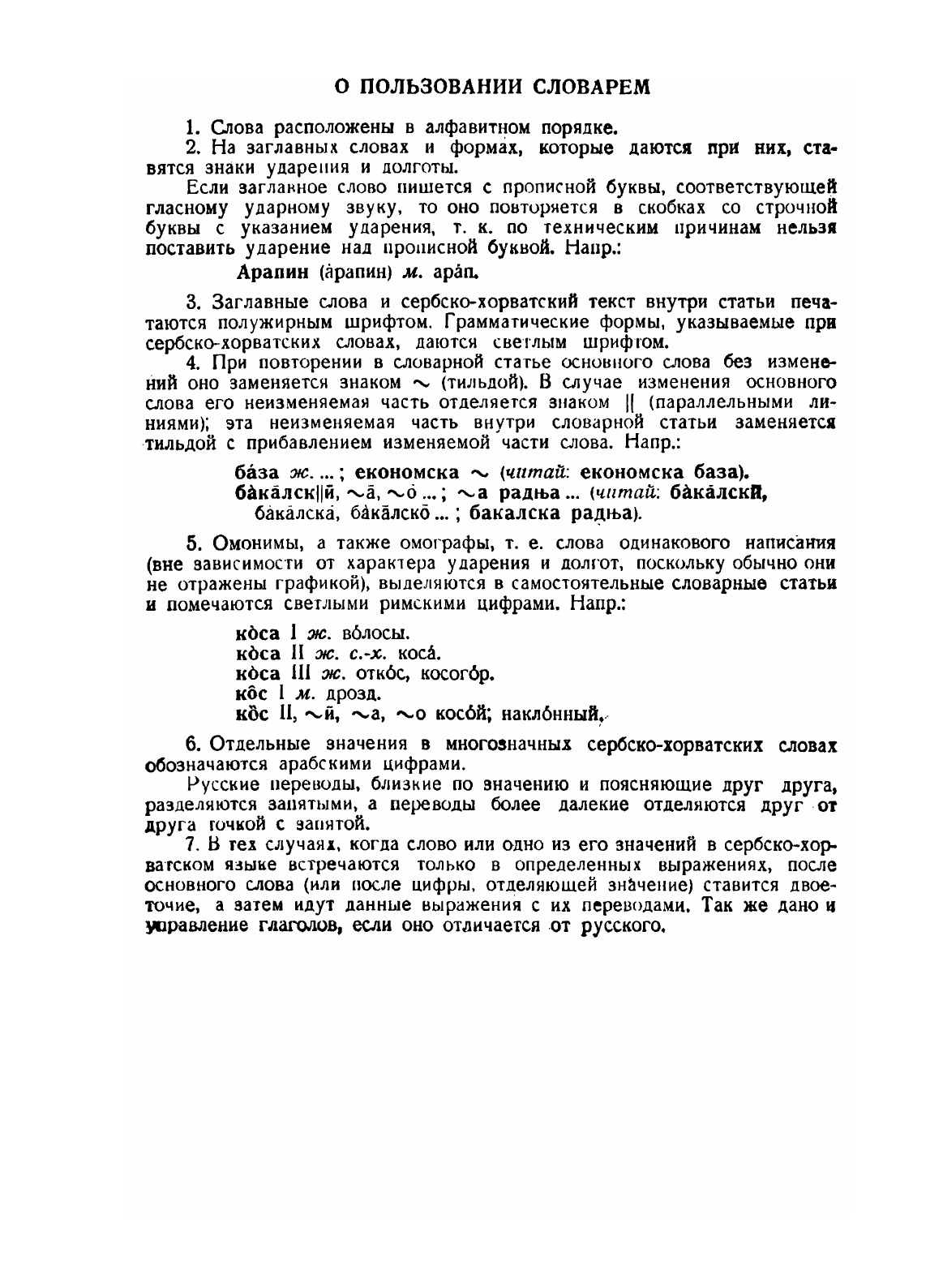 Сербско-хорватско-русский словарь. В 2-х частях. Часть 1. (А-О). Настоящий словарь является первым сербско-хорватско-русским словарем, издаваемым в СССР. Словарь рассчитан на русского читателя и призван помочь переводчику при переводе текста, не имеющего узкоспециального содержания, а также оказать помощь изучающим язык.Настоящий словарь составлен на основе современного (1950 г.) сербско-хорватского языка: в него включена новая общественно-политическая, экономическая и бытовая лексика. Из слов областных, устаревших и слов турецкого происхождения автор счел нужным внести более употребительные, встречающееся в прессе и в произведениях сербских и хорватских писателей – классиков.Словарь содержит около 50 000 слов.