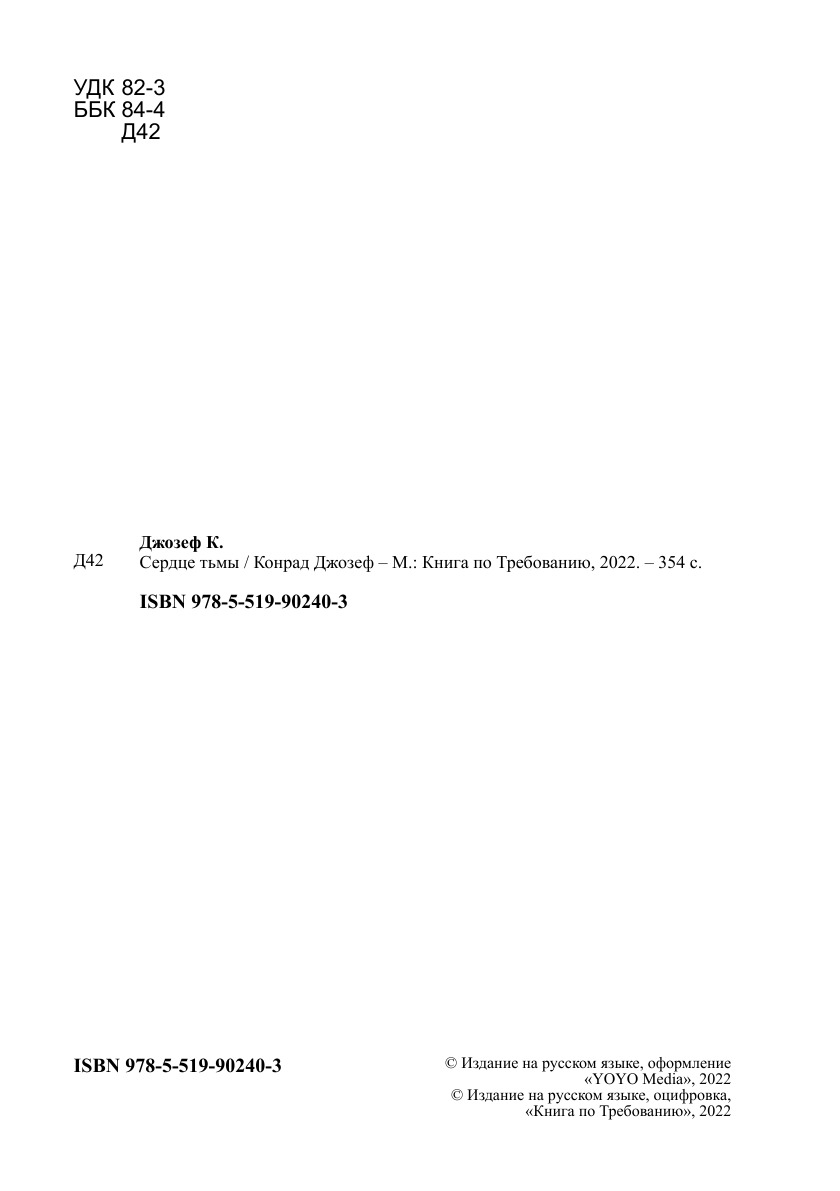 Печатная книга «Сердце тьмы» в мягкой обложке, язык - русский. В книге 354 страниц, она напечатана на белой офсетной бумаге плотностью 80 г/м². Формат издания — 148x210 мм. Все книги аккуратно упаковываем в прочный трёхслойный непрозрачный картонный конверт.