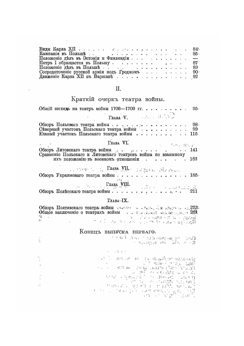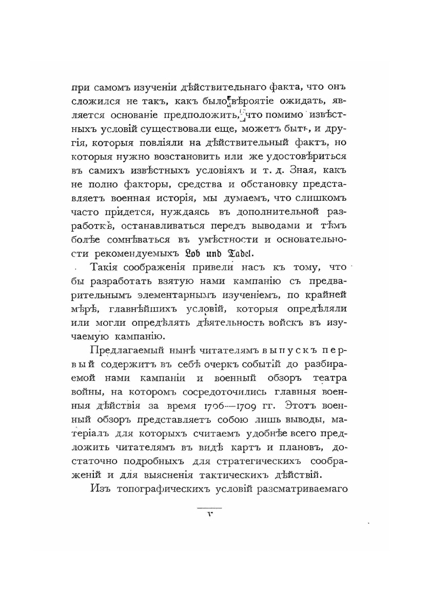 Автор ставит цель изучить условия, которые определяли деятельность войск в кампанию от Гродна до Полтавы, и предлагает обзор главных военных действий за 1706 – 1709 гг. в топографическом, стратегическом, тактическом и статистическом отношении.