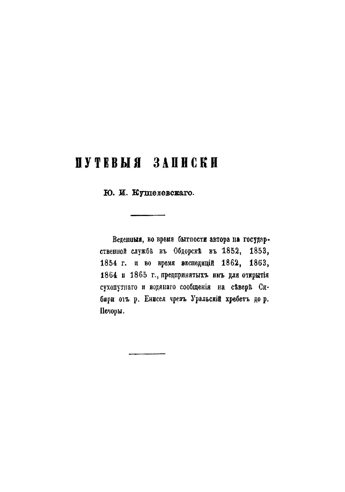 Путевые записки Ю.И. Кушелевского, которые он вел во время государственной службы в Обдорске в 1852 – 1854 гг. и во время экспедиций 1862 – 1865 гг., предпринятых им для открытия сухопутного и водяного сообщения на севере Сибири от реки Енисея через Уральский хребет до реки Печоры. Автор ставит цель рассказать об обитателях северной страны, их обрядах, преданиях и тяжелом быте.