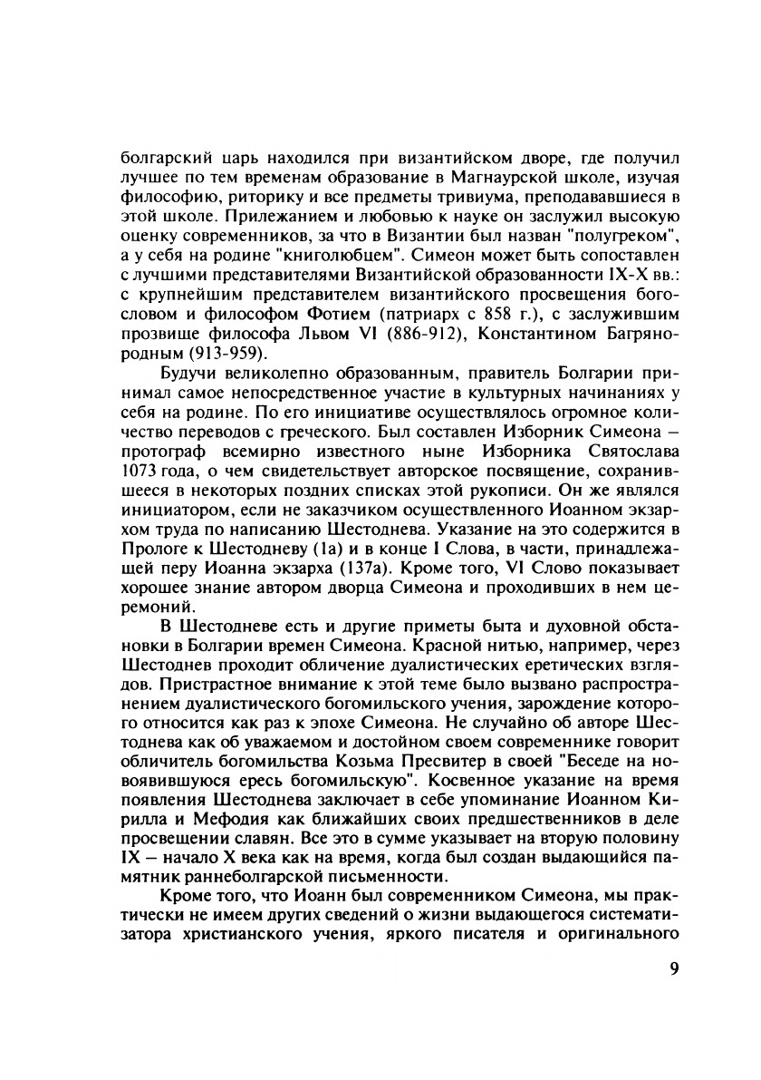 Издание представляет собой публикацию древнерусского текста V Слова Шестоднева, его перевод на современный русский язык, комментарии к переводу и исследование памятника. Шестоднев является одним из основополагающих памятников религиозно-философской культуры Древней Руси. Он заключает в себе богатейшее, еще не осмысленное историками философии содержание. В Щестодневе формулируются основные положения в христианской онтологии, натурфилософии и гносеологии. Будучи энциклопедическим по своему характеру трудом, содержащим наиболее передовые для этой эпохи знания и представления, Щестоднев представлял собой древнейшую в отечественной культуре антологию сведений об античной мысли.