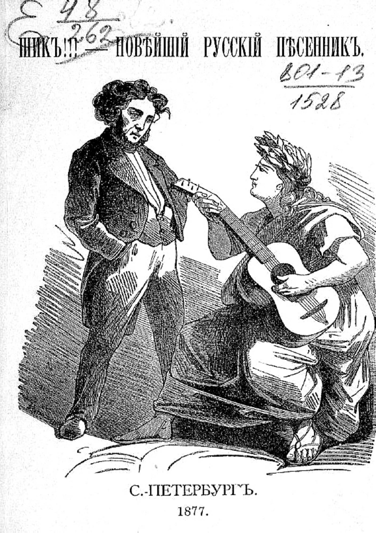 Шик!!! — Новейший рус. песенник : Собр. лучших и любимейших романсов, шансонеток, песен и куплетов, исполняемых на сценах театров, в клубах и в домашнем кругу. — Санкт-Петербург : Рус. скоропеч. (П. С. Нахимова), 1877. — 128 с.; 16.